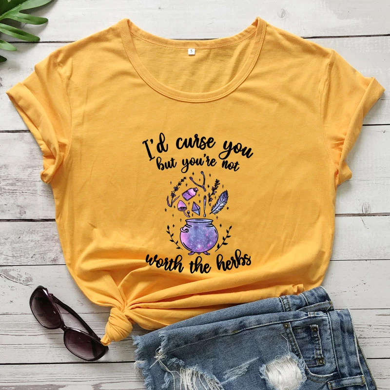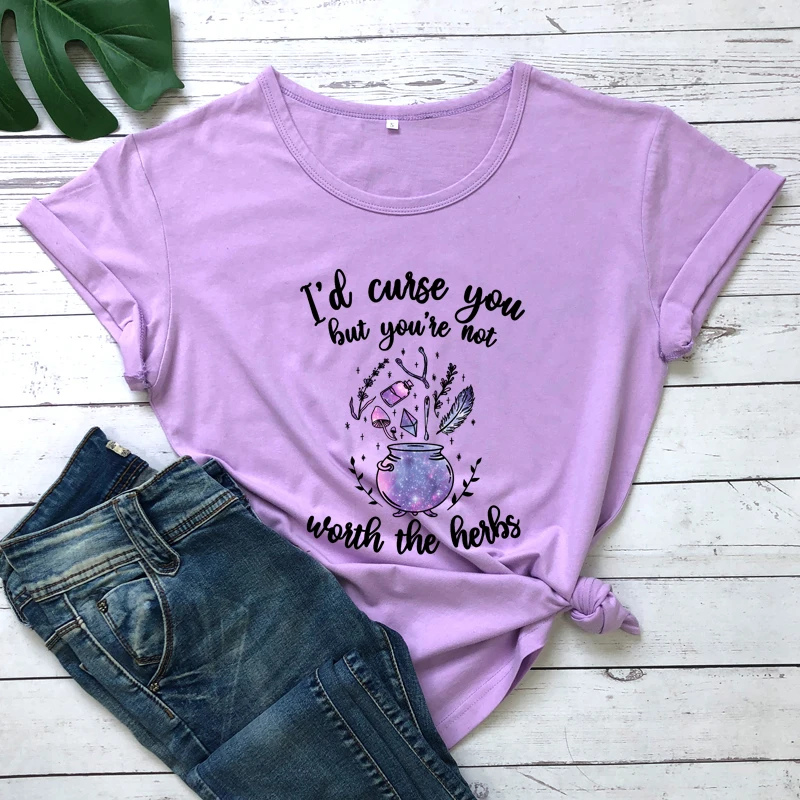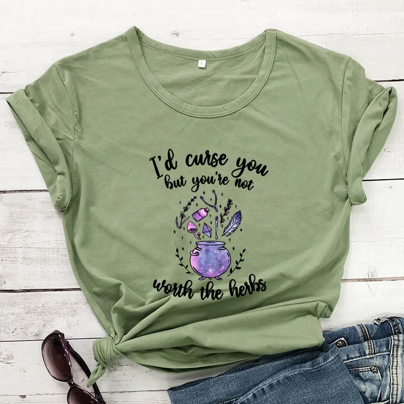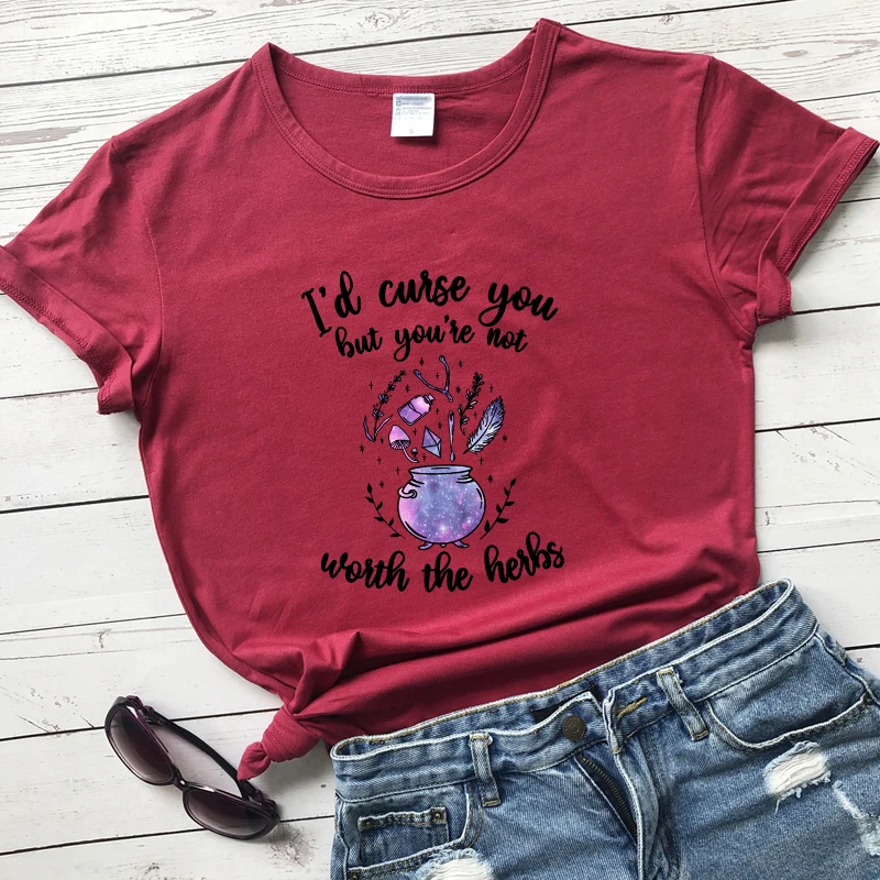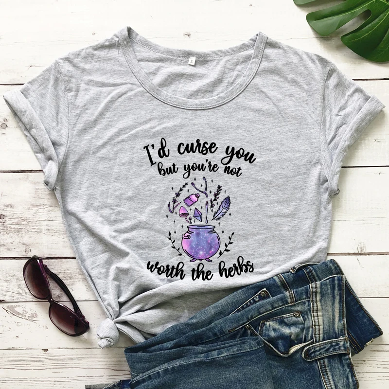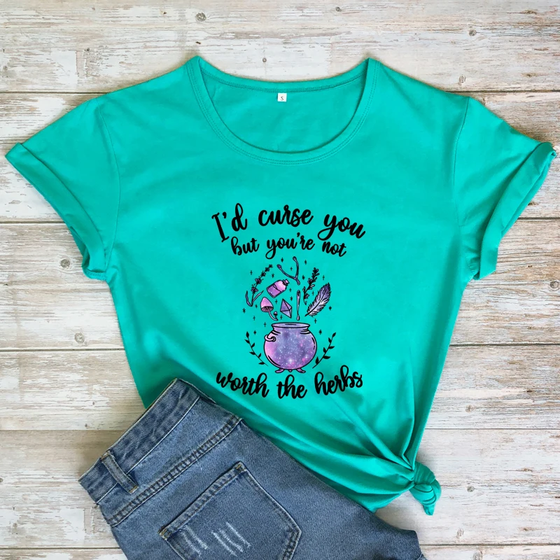 Цветная женская футболка с рисунком я бы продирал тебя, но вы не стоит трав, женская футболка с рисунком волшебного готического стиля