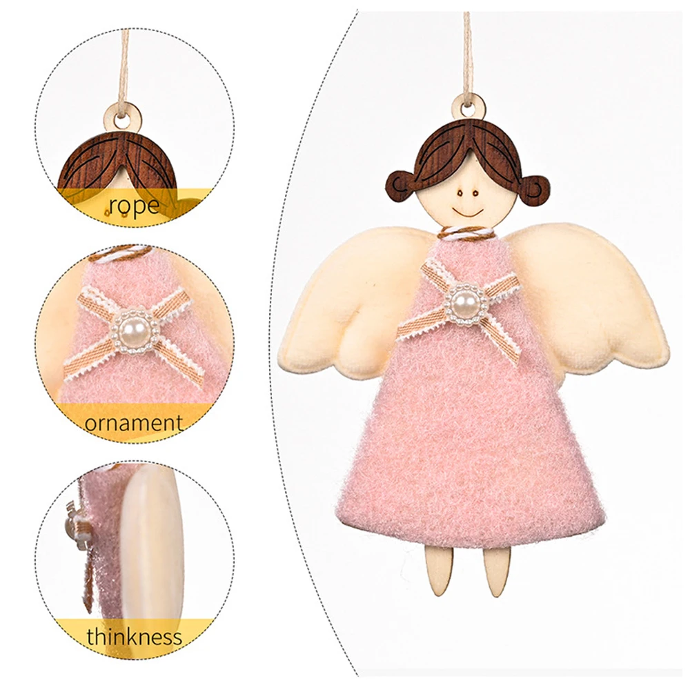 1 шт. 11x9 см розово-синее Рождественское украшение Подвеска деревянная Нетканая Ткань Ангел девочка Рождественское украшение для сцены