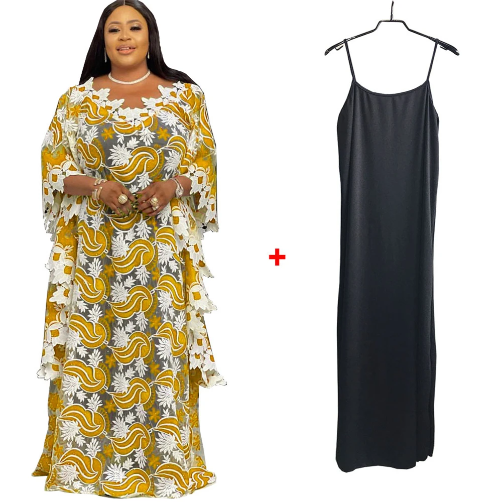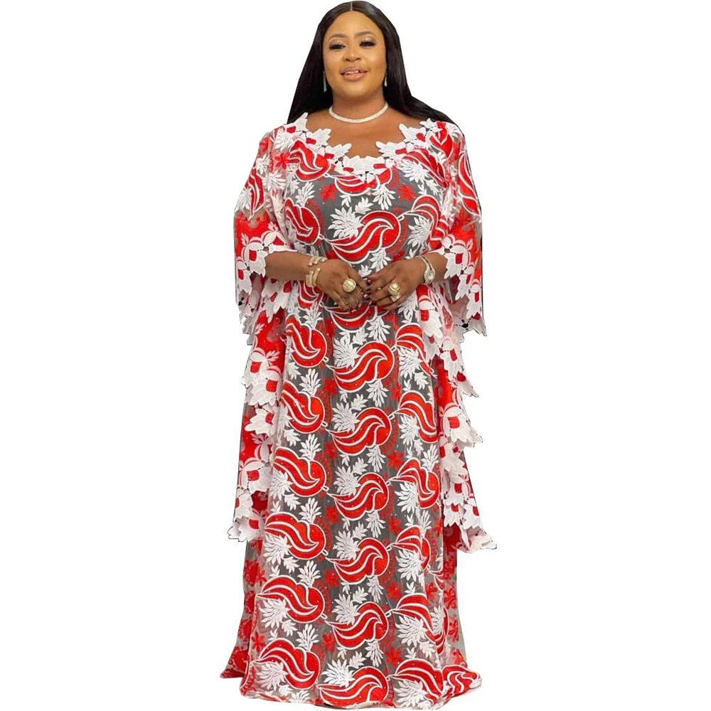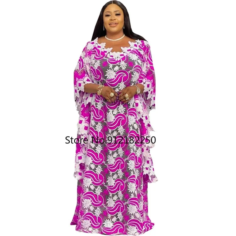 Новинка 2021, африканские кружевные платья из гипюра для женщин, Анкара, Дашики, макси-халат с вышивкой, для свадебной вечеринки, кафтан, абайя, женский халат