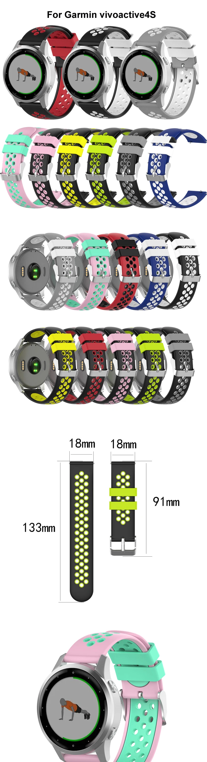 18 мм ремешок для часов для Garmin Vivoactive4s спортивные Смарт часы браслет аксессуары двухцветные силиконовые дышащие браслеты