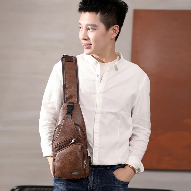 Нагрудная из искусственной кожи для мужчин, сумка на плечо с USB-за...