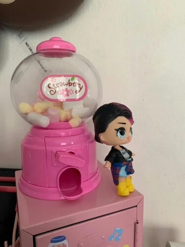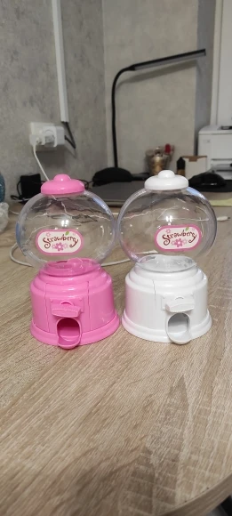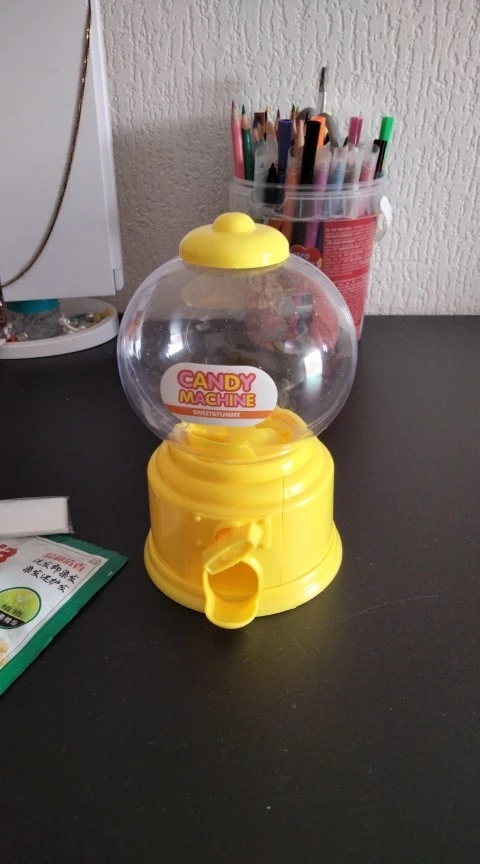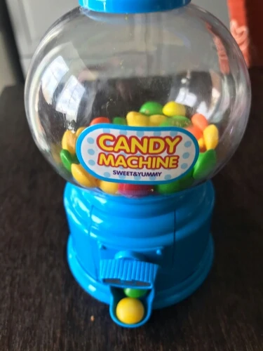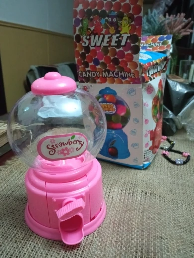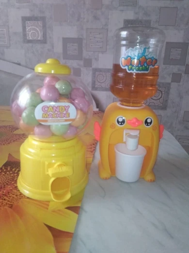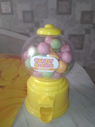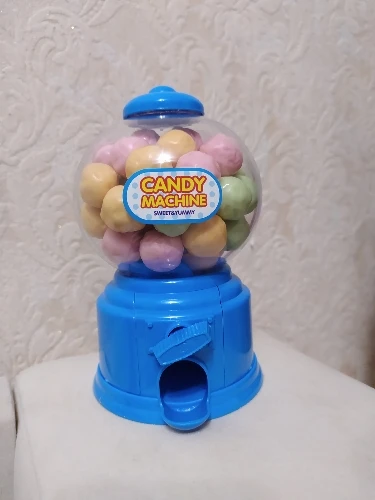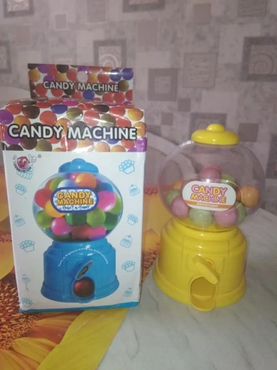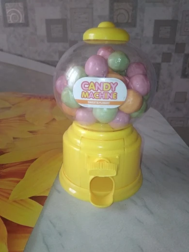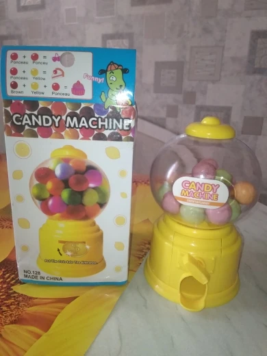 Игрушка маленькая, выполнена из дешевенького пластика, монетки сами по себе, конфетки - сами, то есть чтобы достать конфету, совсем необязательно кидать монетку. За такую цену, конечно, большего особо ожидать не следовало