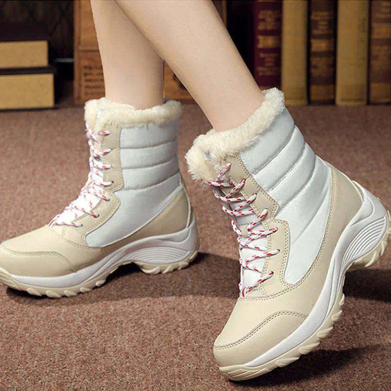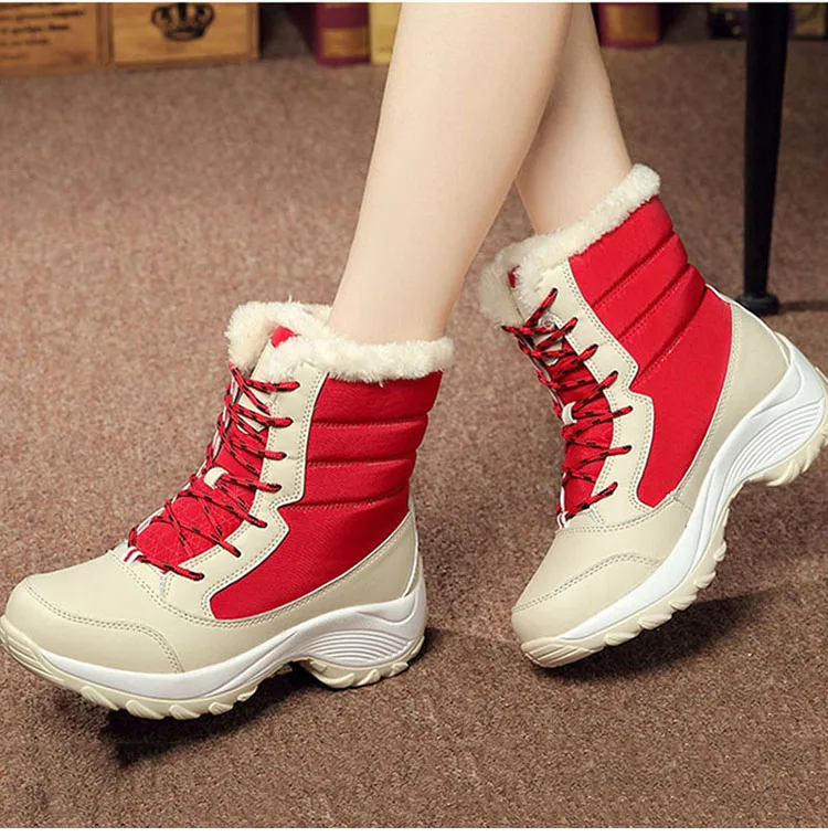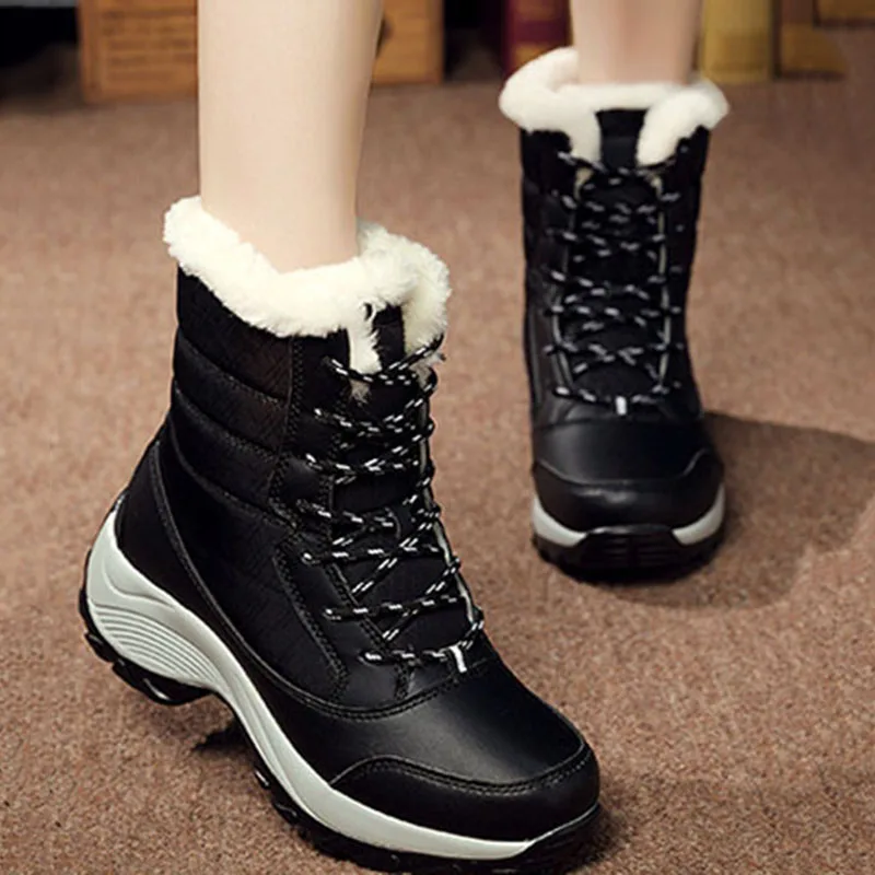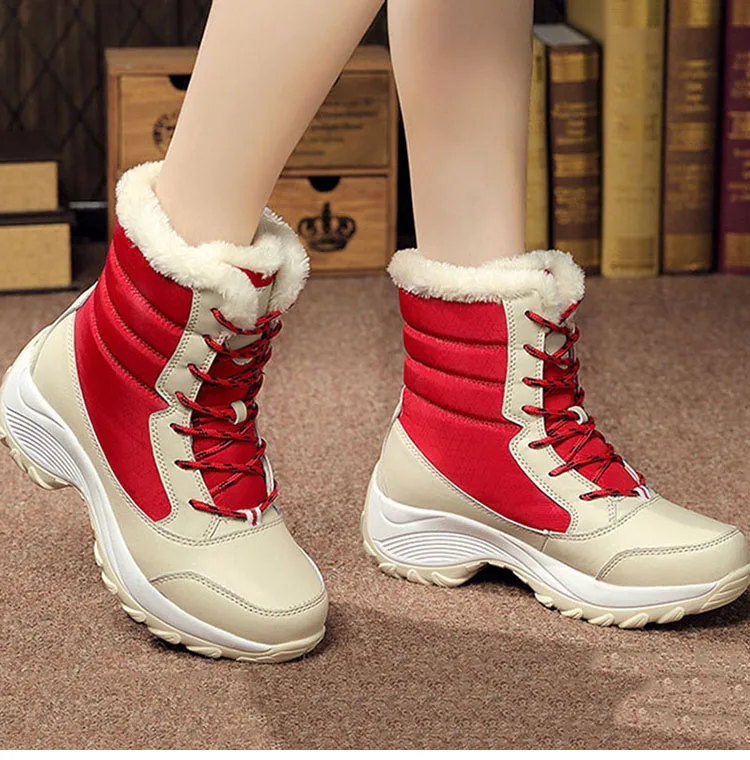 Женские ботинки 2021, зимние ботинки для снежной погоды, ботинки с круглым носком, женская обувь на шнуровке, теплая обувь на меху, Женская водонепроницаемая женская обувь на плоской подошве