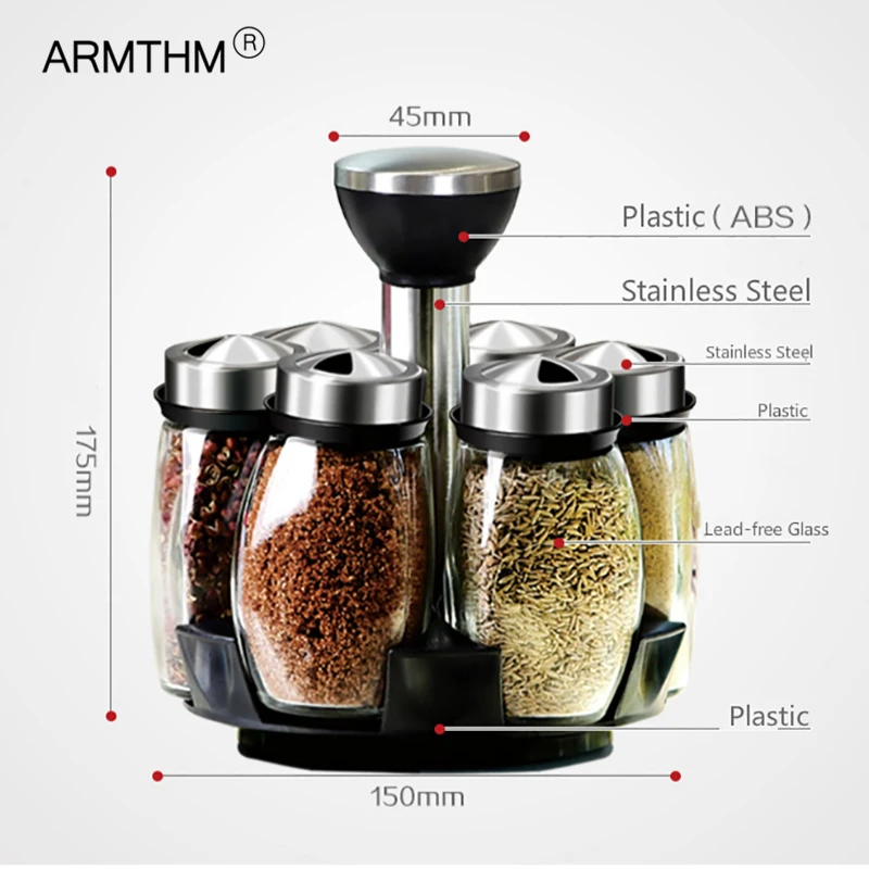 Вращающаяся двухслойная стойка для приправ, специи, вращающаяся стеклянная дробилка, Набор банок для приправ, барбекю, перечница, солонка, набор бутылок