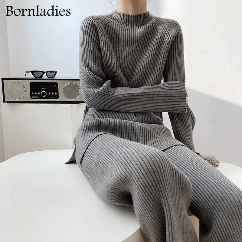 Мягкие зимние комплекты из шерстяных брюк, женский серый свитер с к...