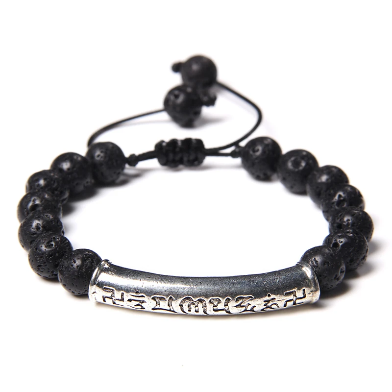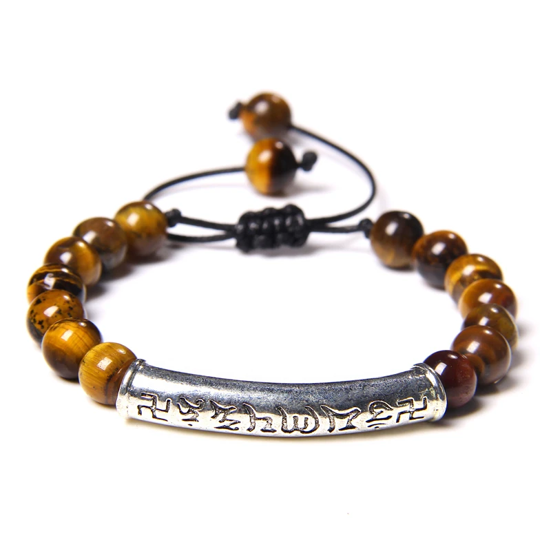 Браслет Из тигровый глаз и лавовый камень натуральных камней, с шармами, регулируемый, ювелирные изделия в стиле буддизма