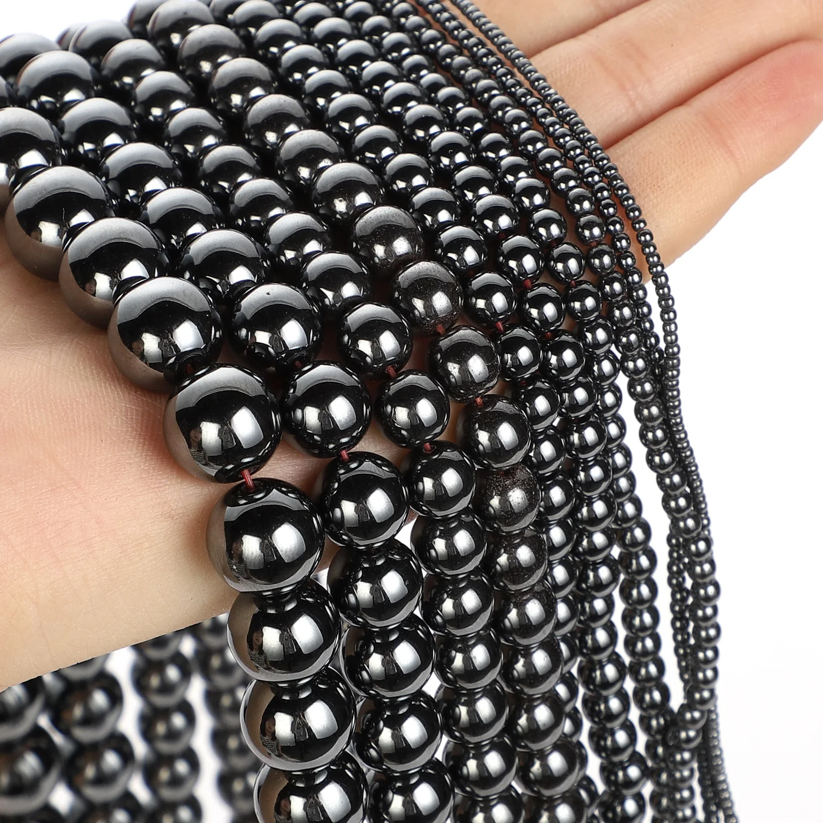 Бусины из натурального камня, черные бусины из гематита, круглые бу...