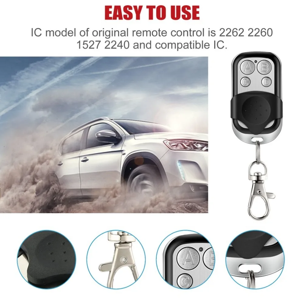 Этот продукт может копировать пульт дистанционного управления со следующим чипом внутри: PT2264, PT2262, PT2260, PT2240, SC2262, SC2260, EV1527, SCT527, HS1527, HS2240, SCL1527, FP1527. Если вы не копируете с правильной операцией, вам может потребоваться проверить, есть ли у вашего устройства чип выше.