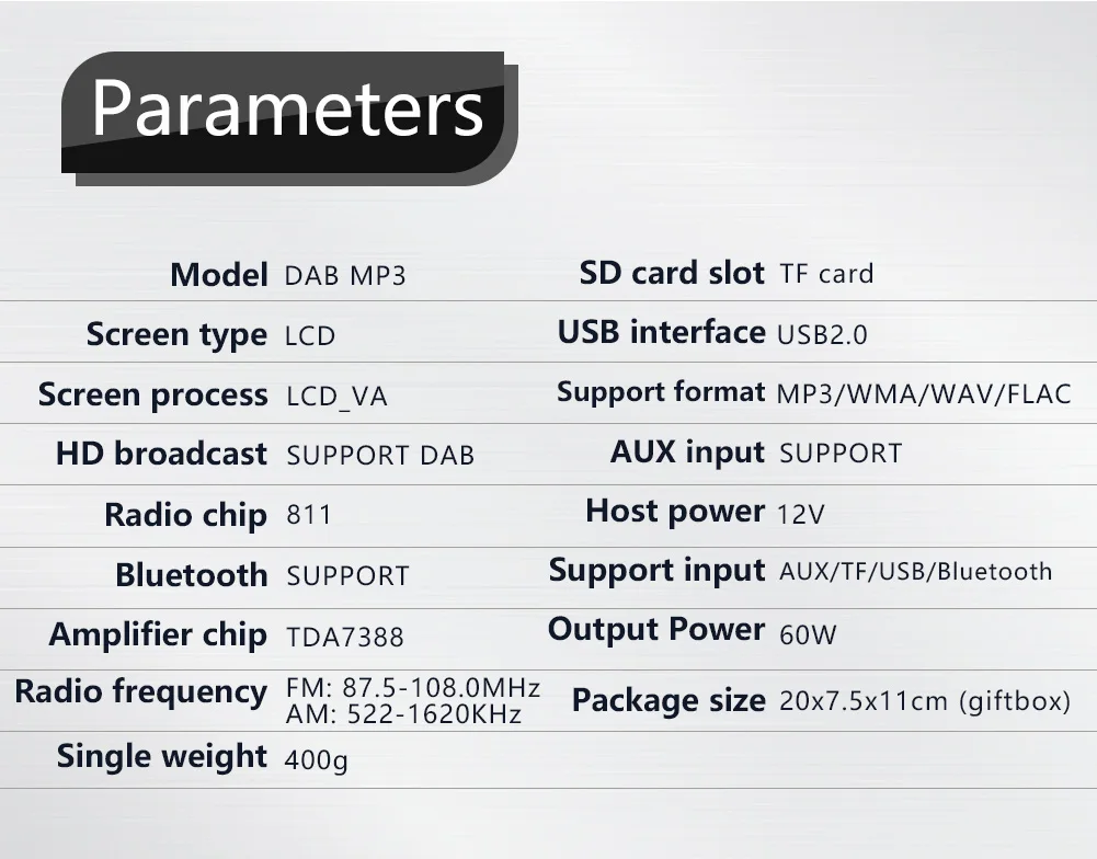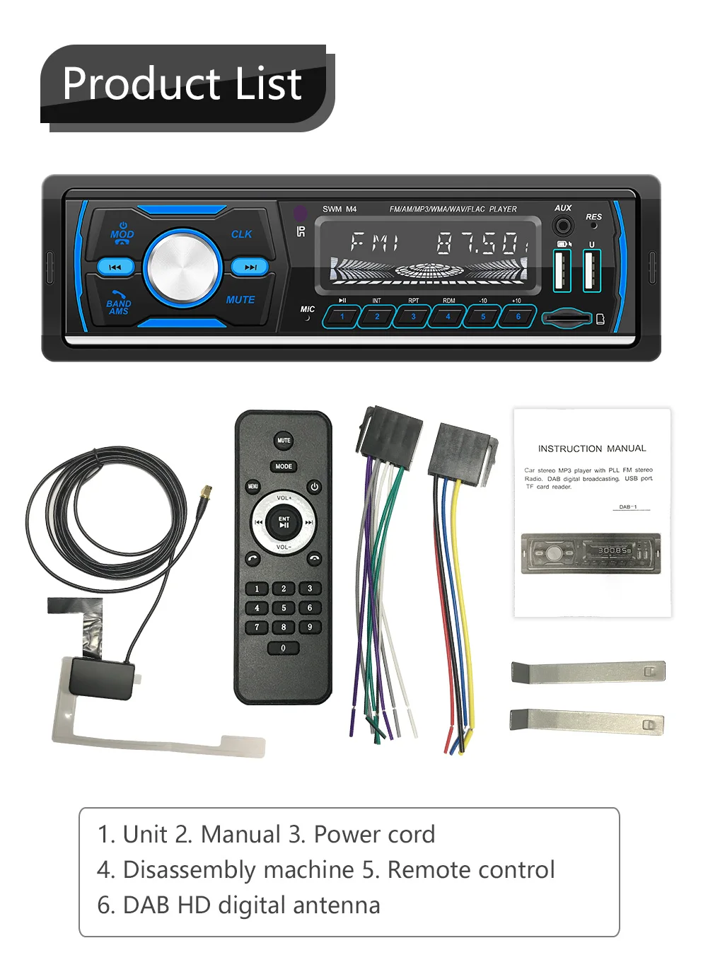 Новый автомобильный радиоприемник Bluetooth с дистанционным управлением 1 Din цифровой медиа-приемник Поддержка FMAMRDSDAB +MP3