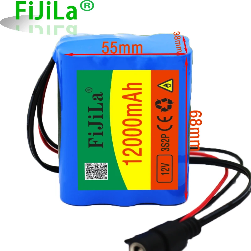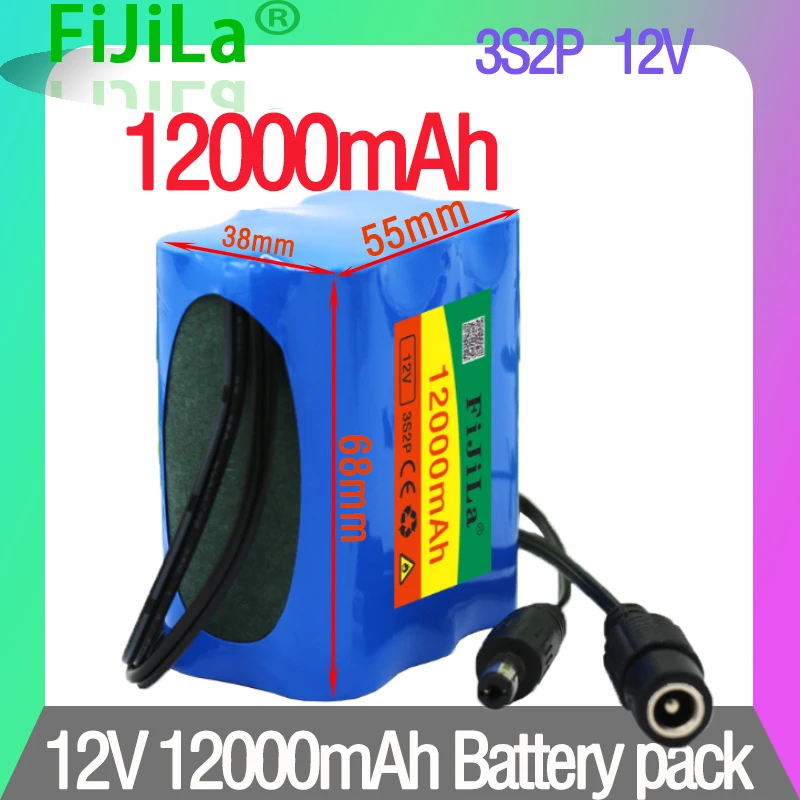 3S2P 12V 12000mah аккумулятор 18650 Li-Ion 12,0 Ah перезаряжаемые батареи с литиевая батарея BMS батареи Защитная панель + зарядное устройствоНоминальное напряжение: 11,1 V-12,6 V