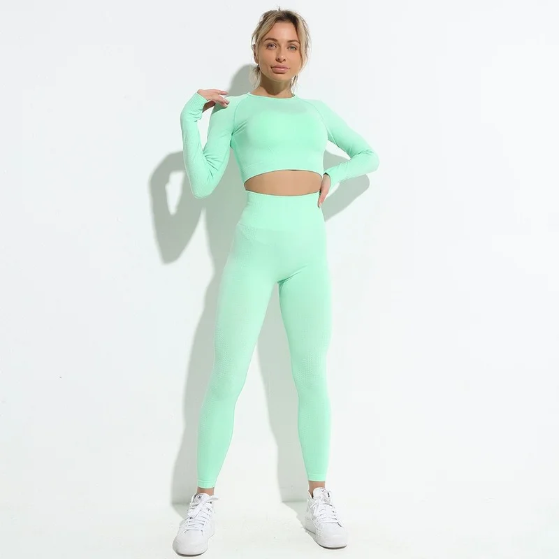 Костюм для йоги, эластичный спортивный костюм с высокой талией для бега, фитнеса, Женский бесшовный костюм для спортзала, леггинсы, комплект для тренировок, короткий топ, колготки