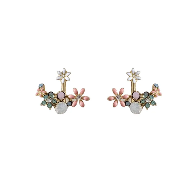Корейские винтажные разноцветные висячие серьги с масляным цветком для женщин, серьги-гвоздики с кристаллами, Женские романтичные серьги, ювелирные изделия