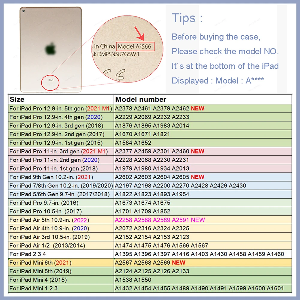 Номер моделиFor iPad AIR 4 10.9/PRO 11/PRO 12.9/AIR 3 10.5/MINI 5/10.2 7 8TH/5 6TH