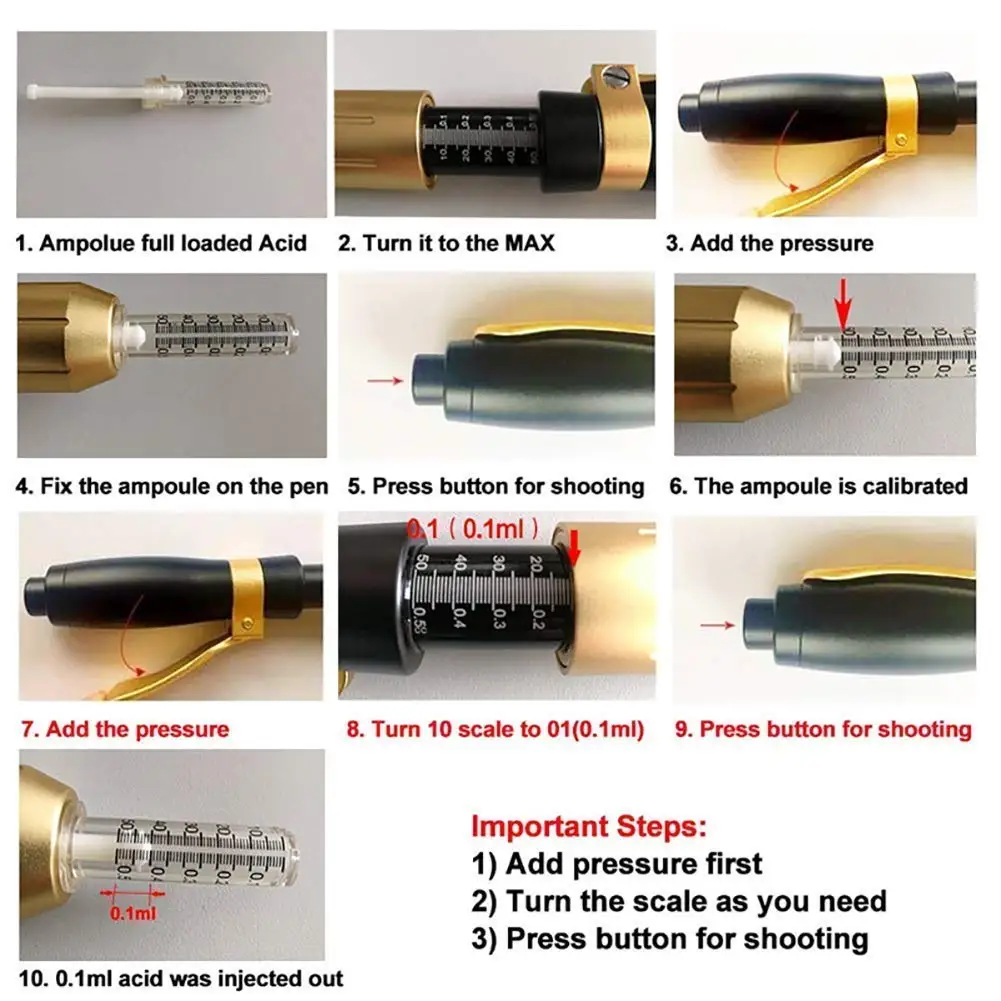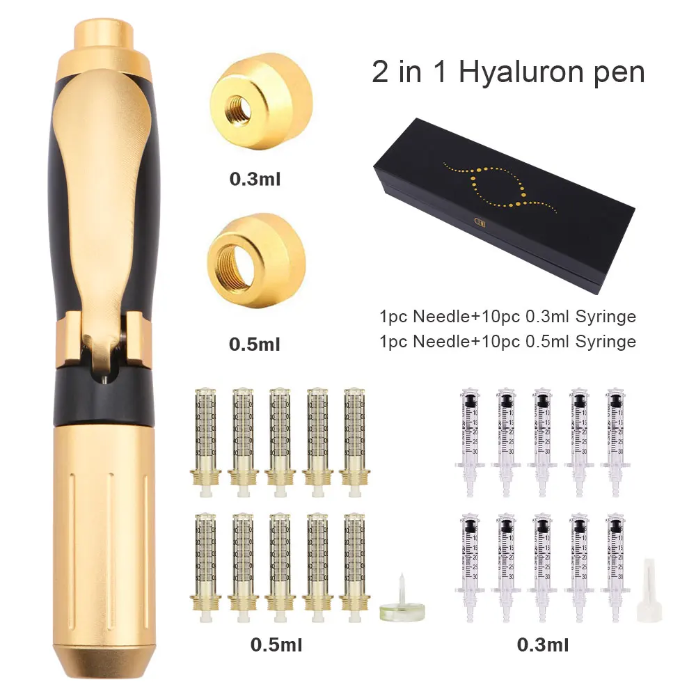 Инъекционный пистолет 2 в 1, гиалуроновая ручка для инъекций 0,3 мл и 0,5 мл, золотая ручка с гиалуроновой кислотой, пистолет для инъекций Meso, небулайзер, инъекция губ против морщин