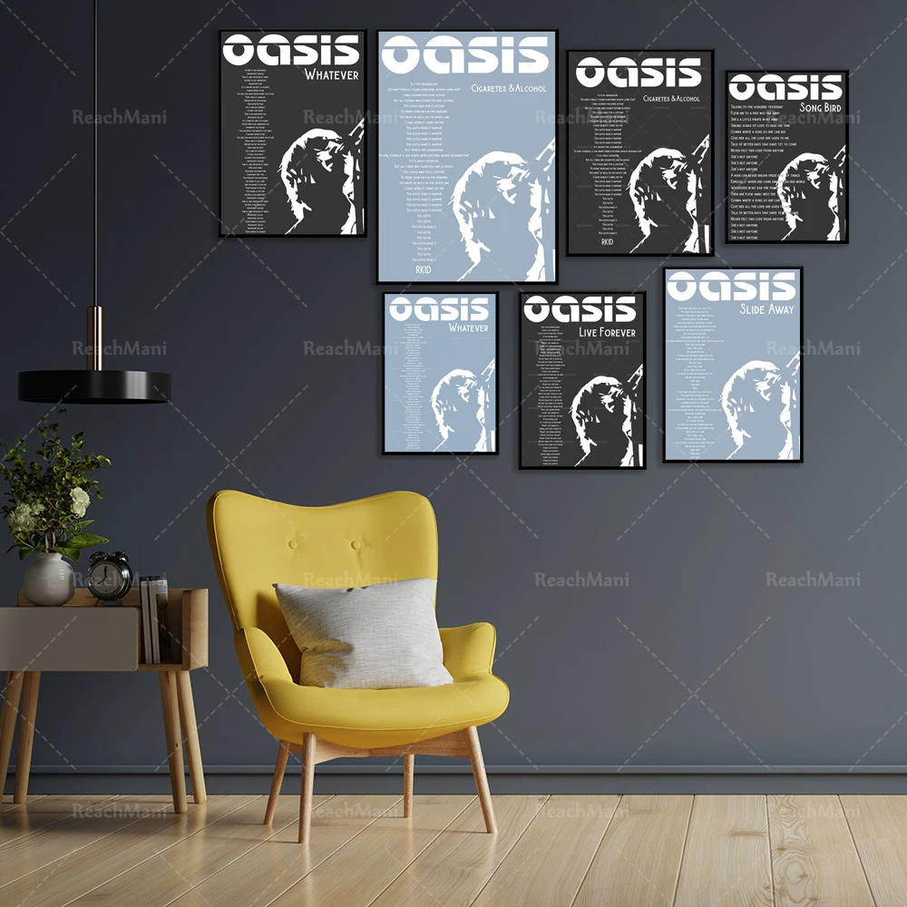 Поп-песня музыкальный постер сигарета и алкоголь, выскользнуть песню птица-оазис песни постер, текст оазиса постер украшение уникальный подарок