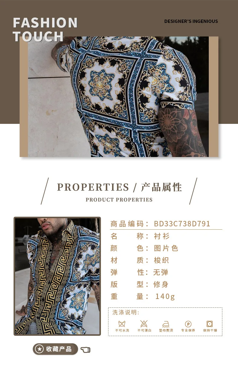 Рубашка мужская с принтом в этническом стиле, модная рубашка с коро...