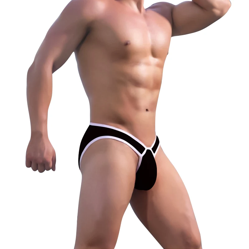 Мужские трусы брифы с мешочком для пениса, черные удобные трусы сли...