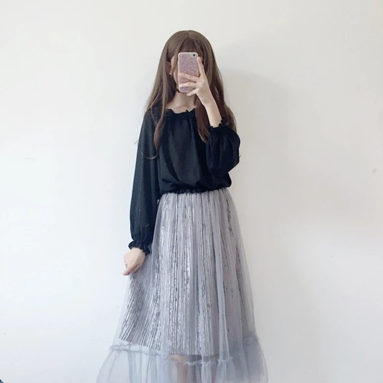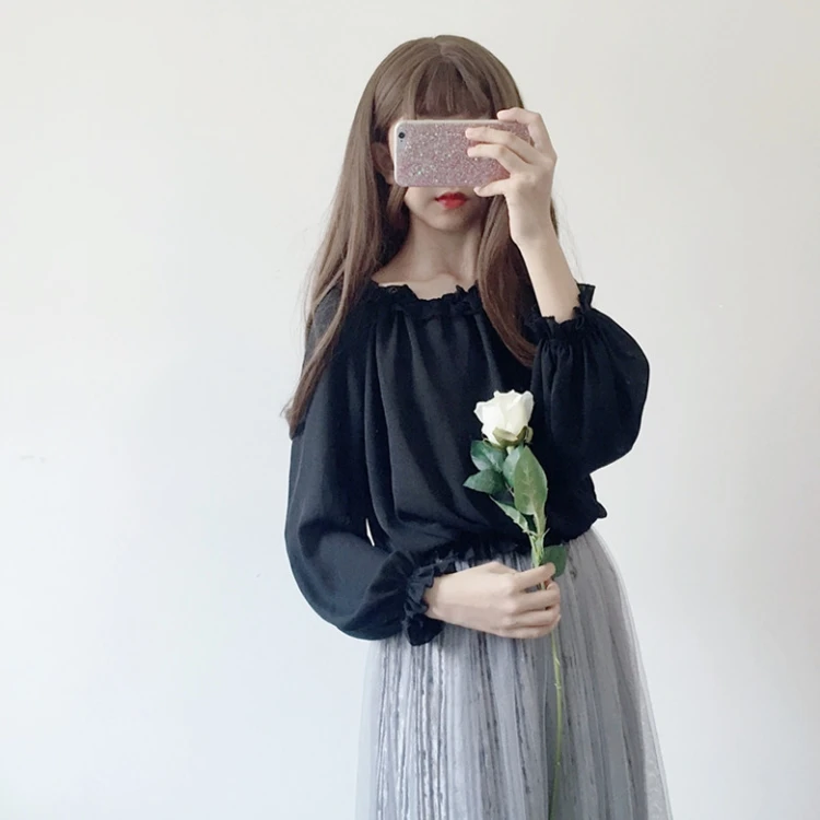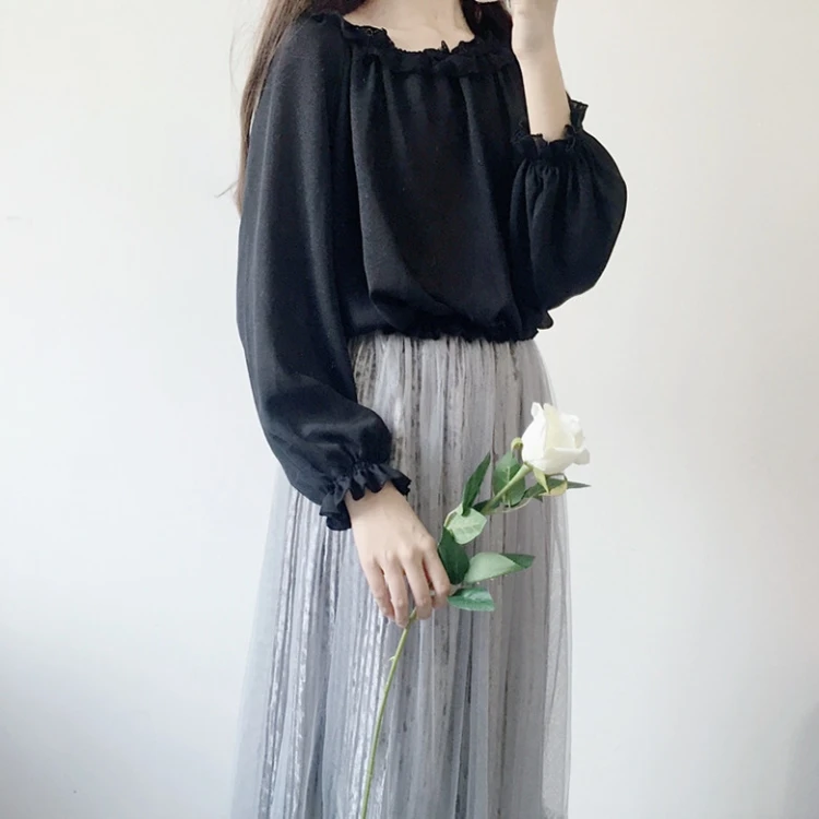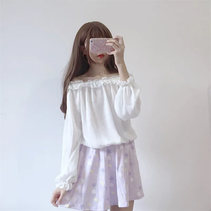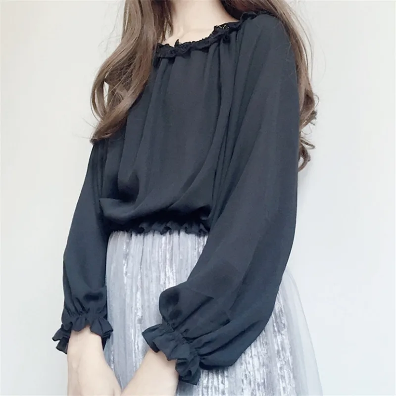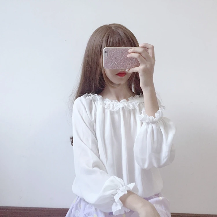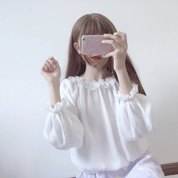 Кружевная рубашка в японском стиле "Лолита", Женская Осенняя Мягкая Милая шифоновая рубашка с оборками для девушек, Женская белая блузка с длинным рукавом, топы