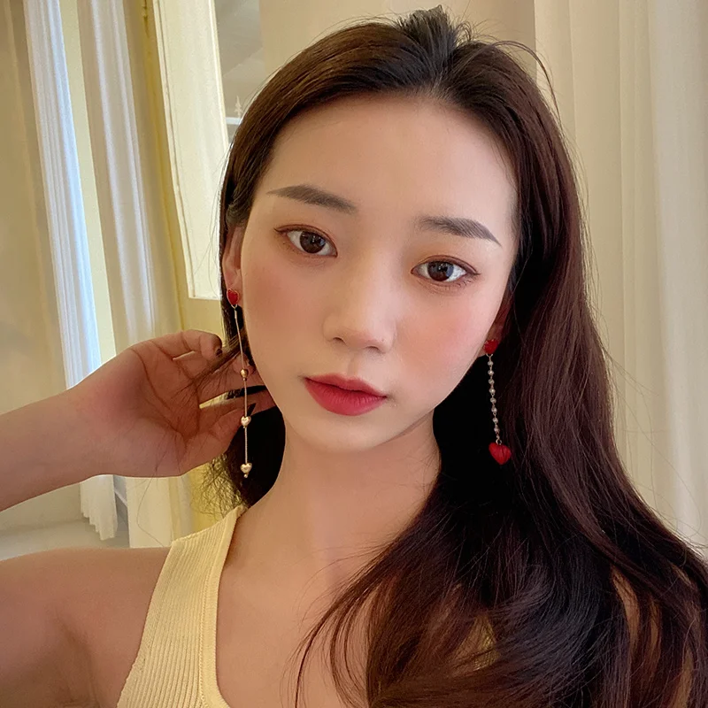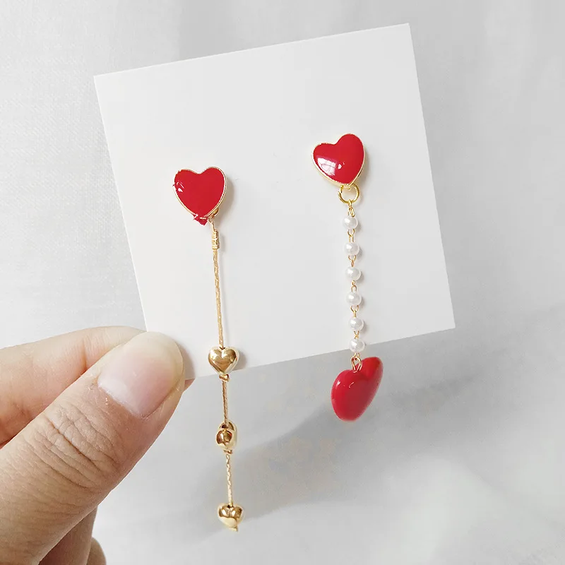 Асимметричные висячие серьги в форме сердца, модные женские серьги в Корейском стиле, подвески из искусственного жемчуга, женские серьги