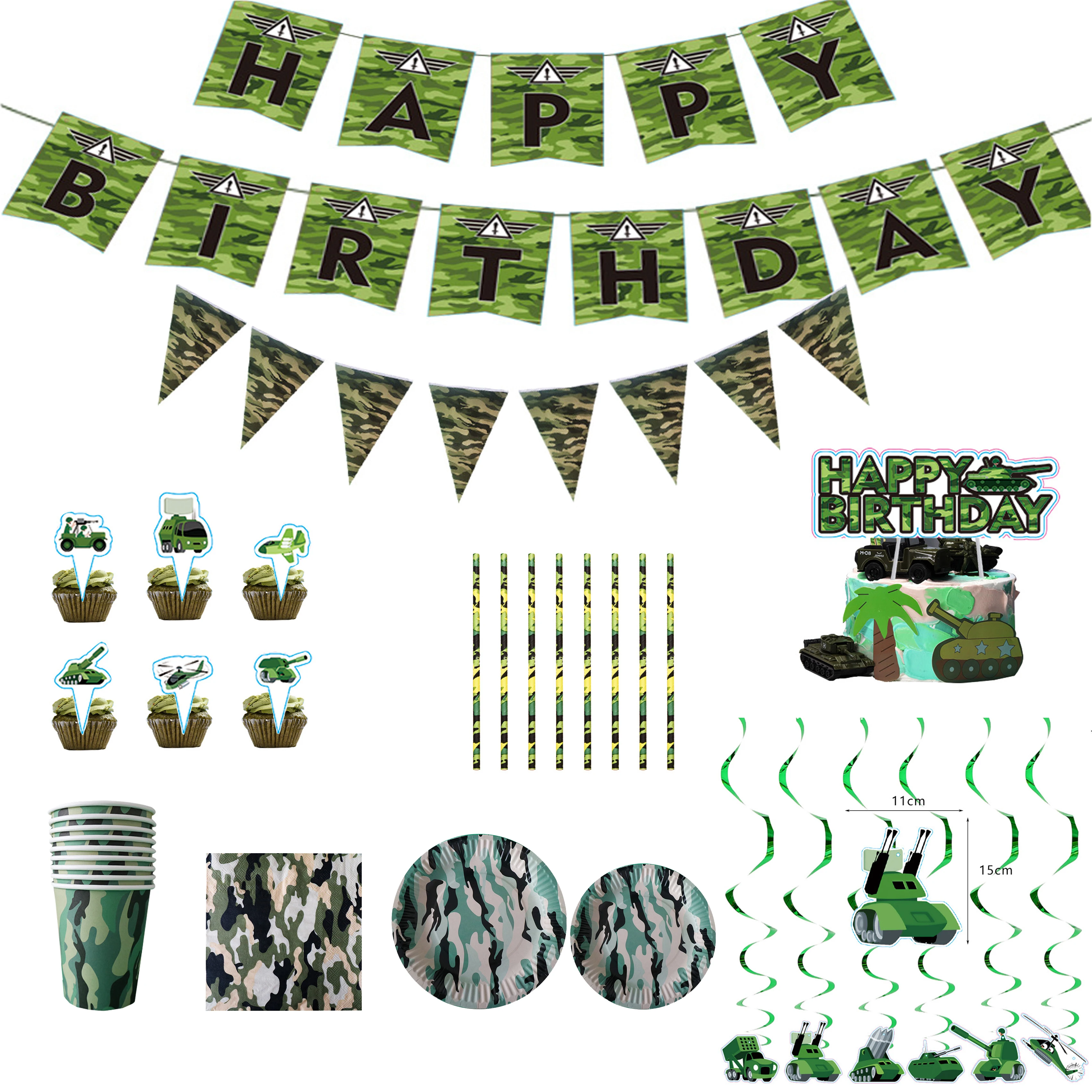 Камуфляжная посуда в стиле милитари для вечерние НКИ, танка, флаг т...