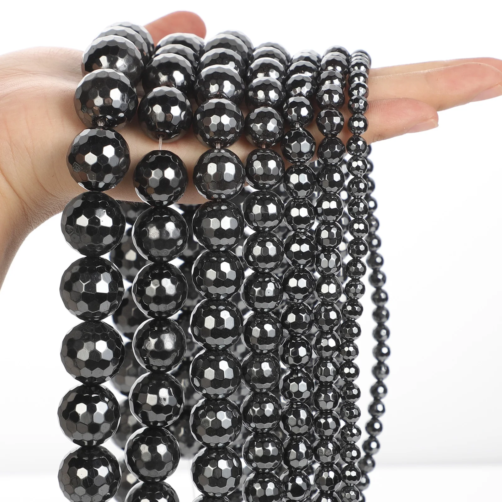 Бусины из натурального камня, черные бусины из гематита, круглые св...