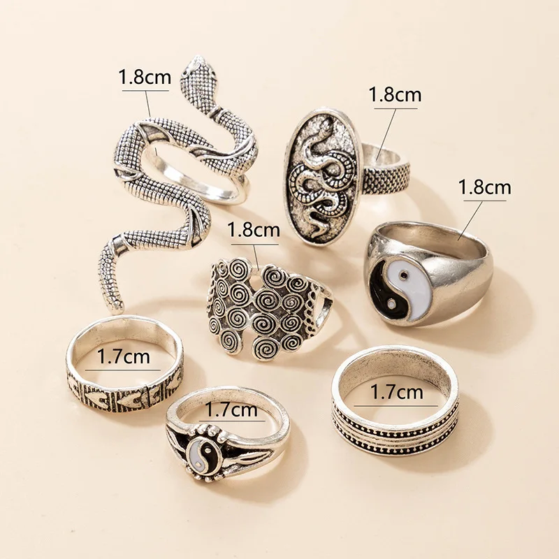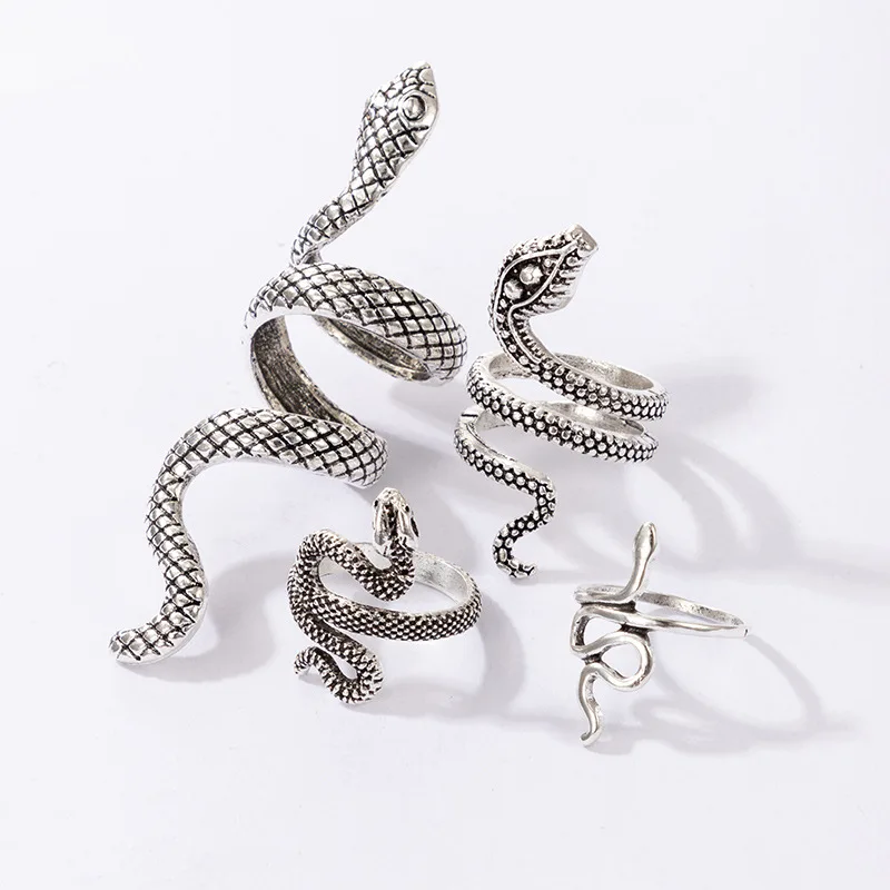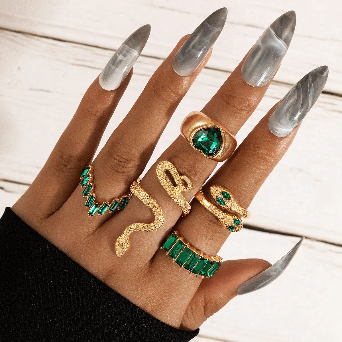 DIEZI Панк Зеленый Камень Стразы шарнирные Кольца Набор для женщин Винтаж древняя змея золотистого цвета кольца на палец ювелирные изделия для девочек