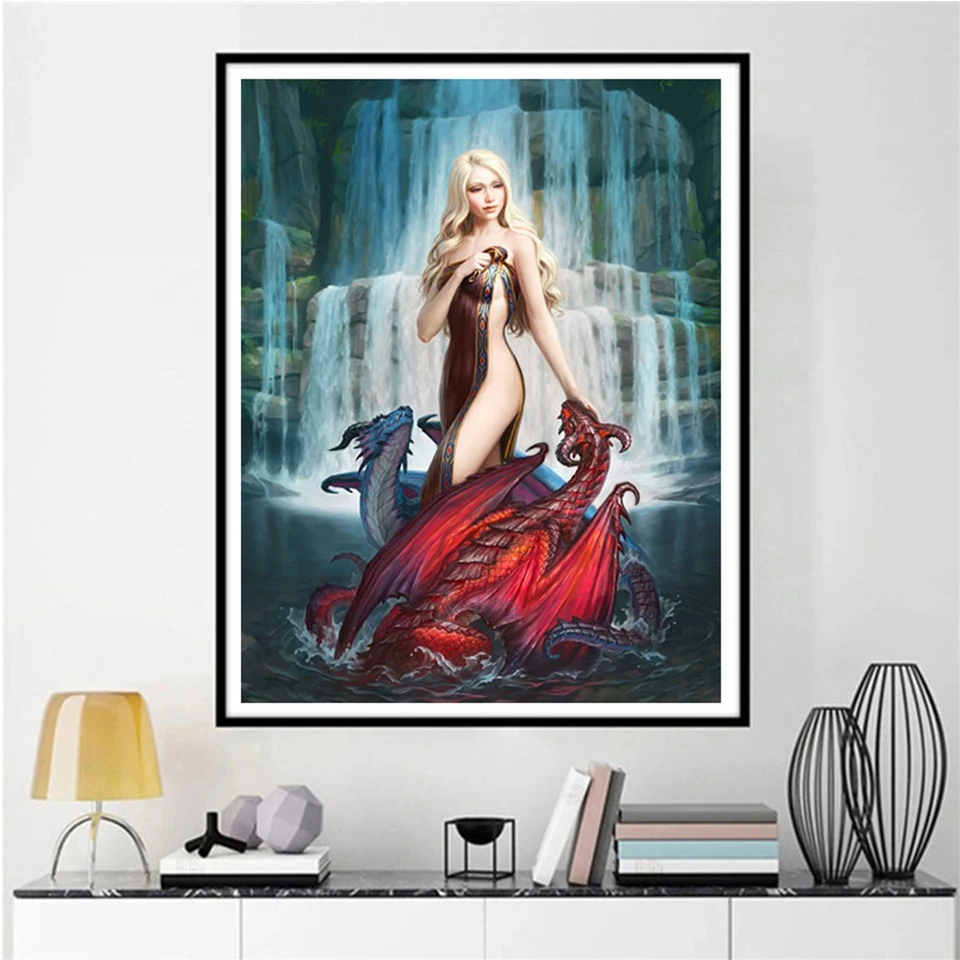 Алмазная живопись дракон для рукоделия, картина с квадратнымикруглыми стразами, 5d мозаика, фотоальбом Водопад, Декор для дома для девушек