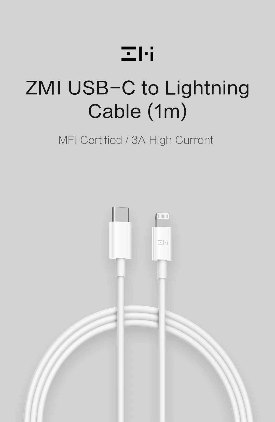 Кабель ZMI MFI с usb c на lightning для iPhone 12, 11, xs, xr, 87, SE, Apple ipad PD, кабель для быстрой зарядки и передачи данных, короткий 30 см, 1 м, 1,5 м