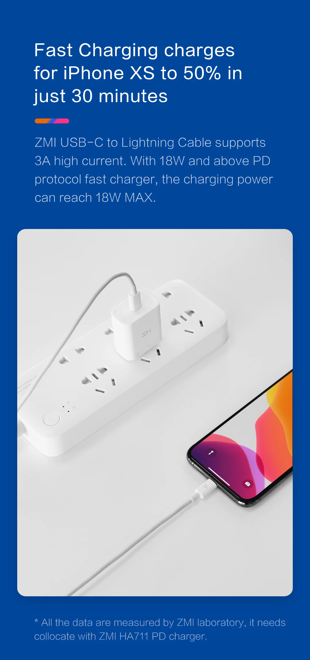 Usb-кабель ZMI Lightning MFI Сертифицированный для iPhone 11 xs xr ...