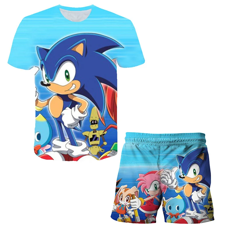 Женская Новинка, Детская футболка и шорты Sonic, летняя модная футб...