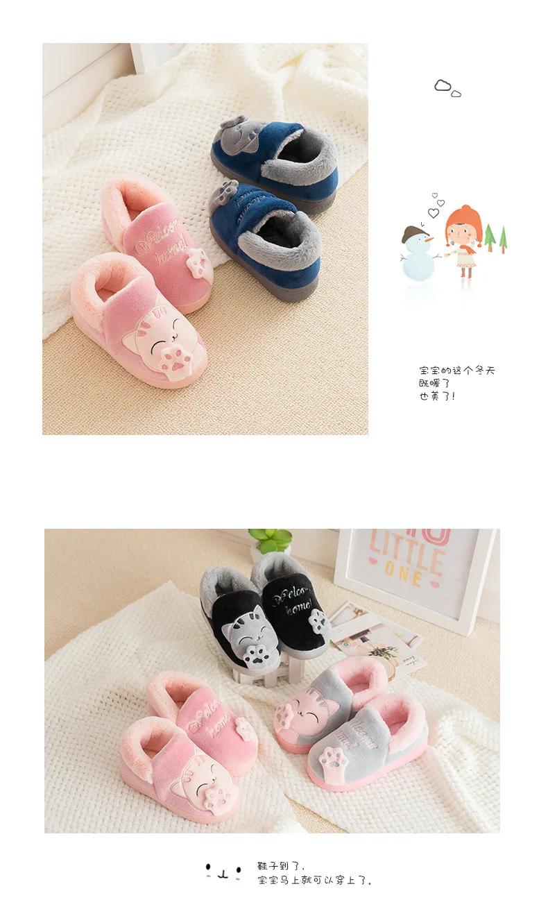 Детские зимние теплые домашние тапочки, детские Нескользящие плюшевые мягкие домашние тапочки на плоской подошве с изображением кошки и животного, удобные тапочки для мальчиков и девочек, 2021