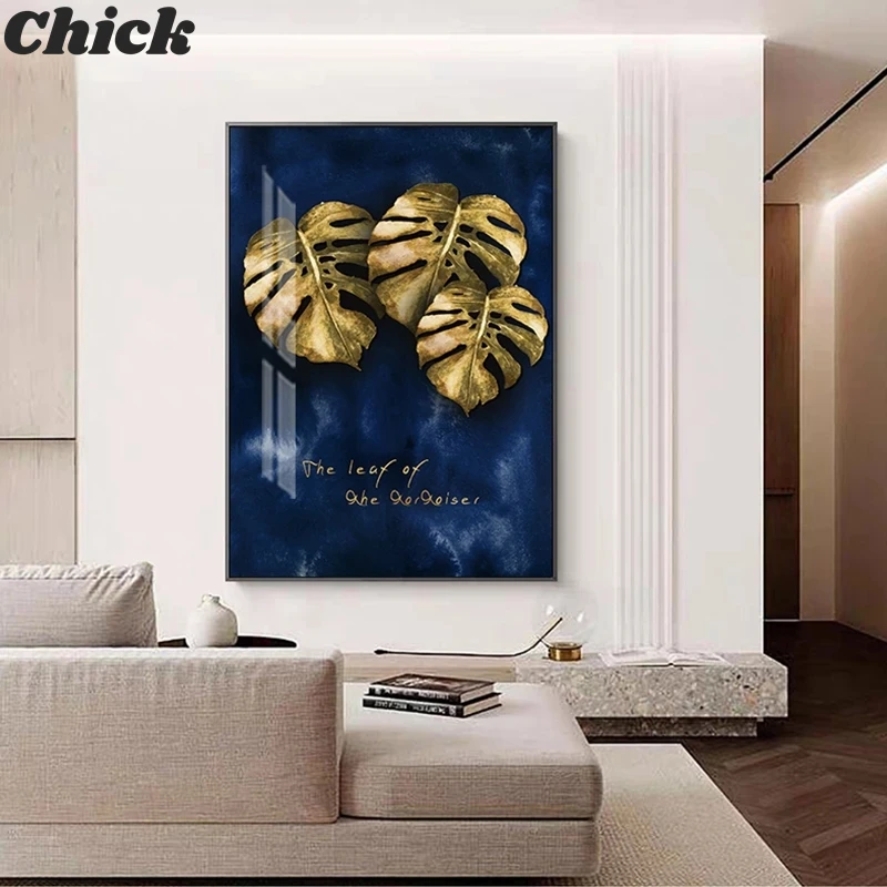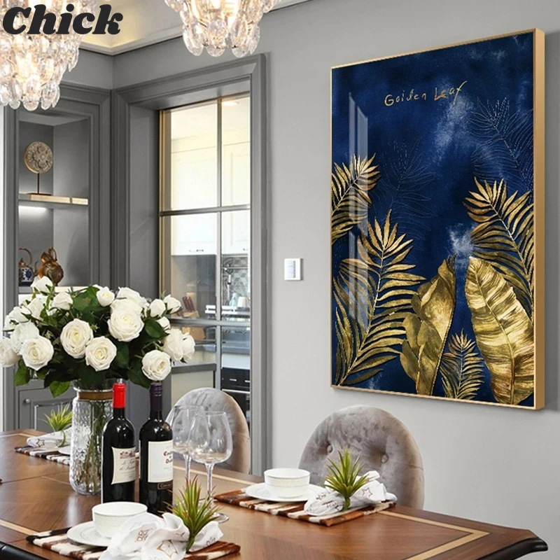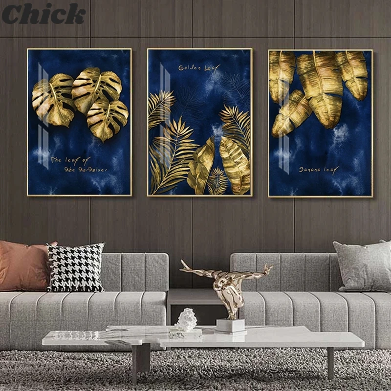Картина на холсте с изображением золотых растений, синего цвета, модный большой плакат, скандинавский художественный принт, современный минимализм, Настенная картина, декор для гостиной