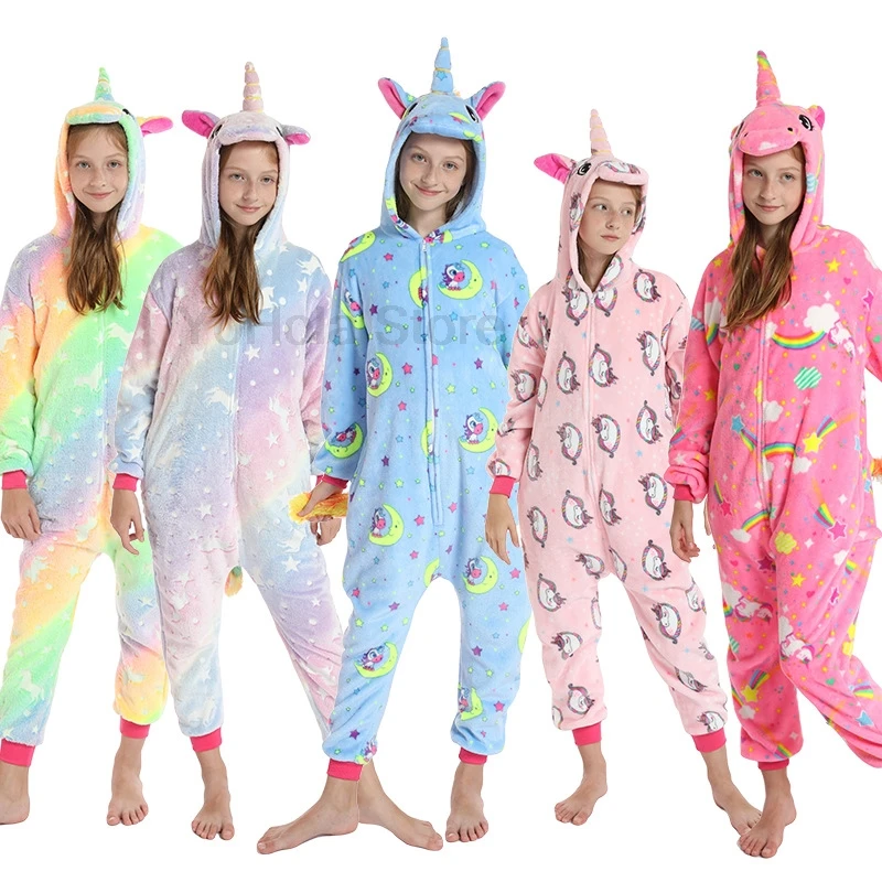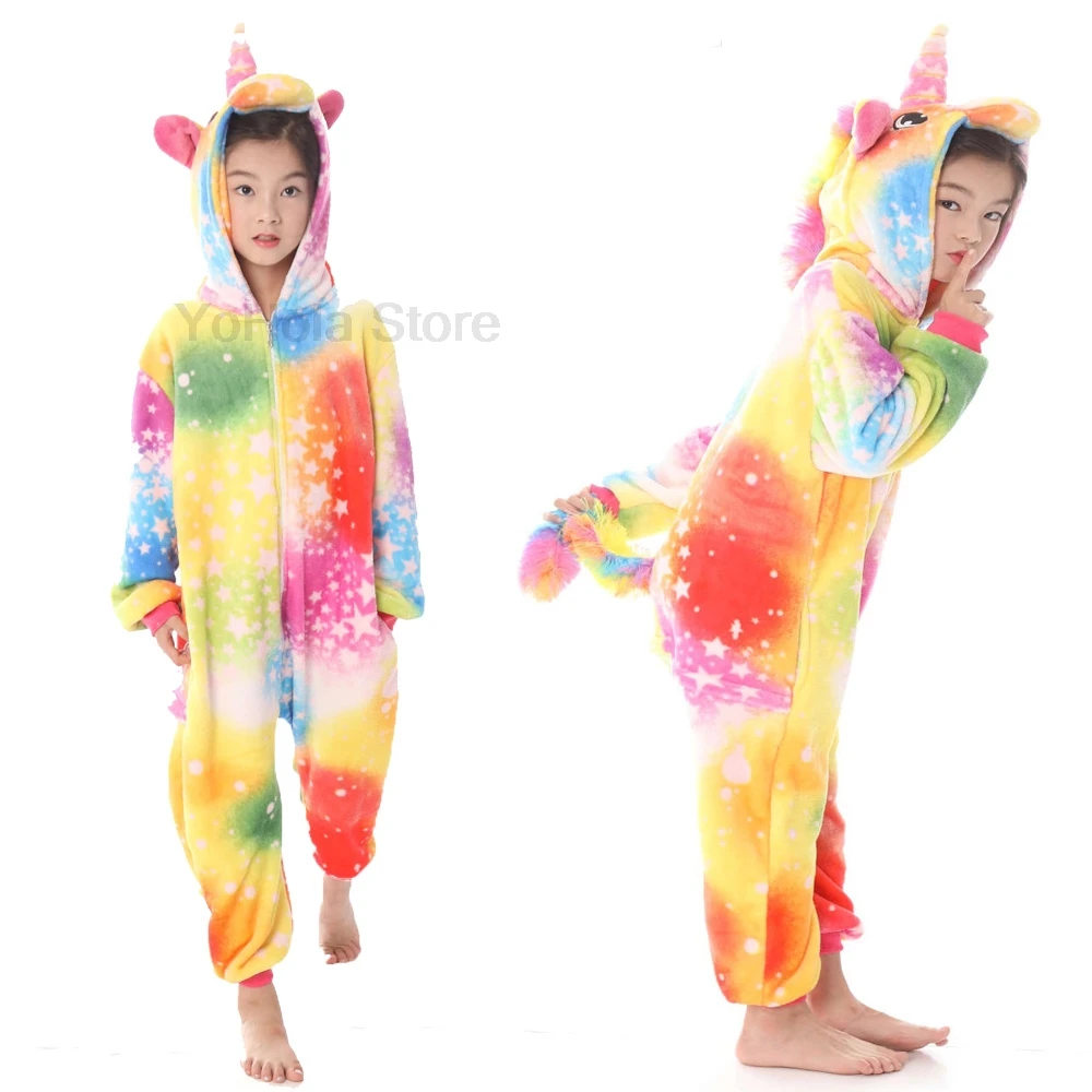 Зимние теплые кигуруми Единорог животные комбинезон фланелевые мягкие пижамы для детей интересная детская одежда для сна комбинезон для косплея