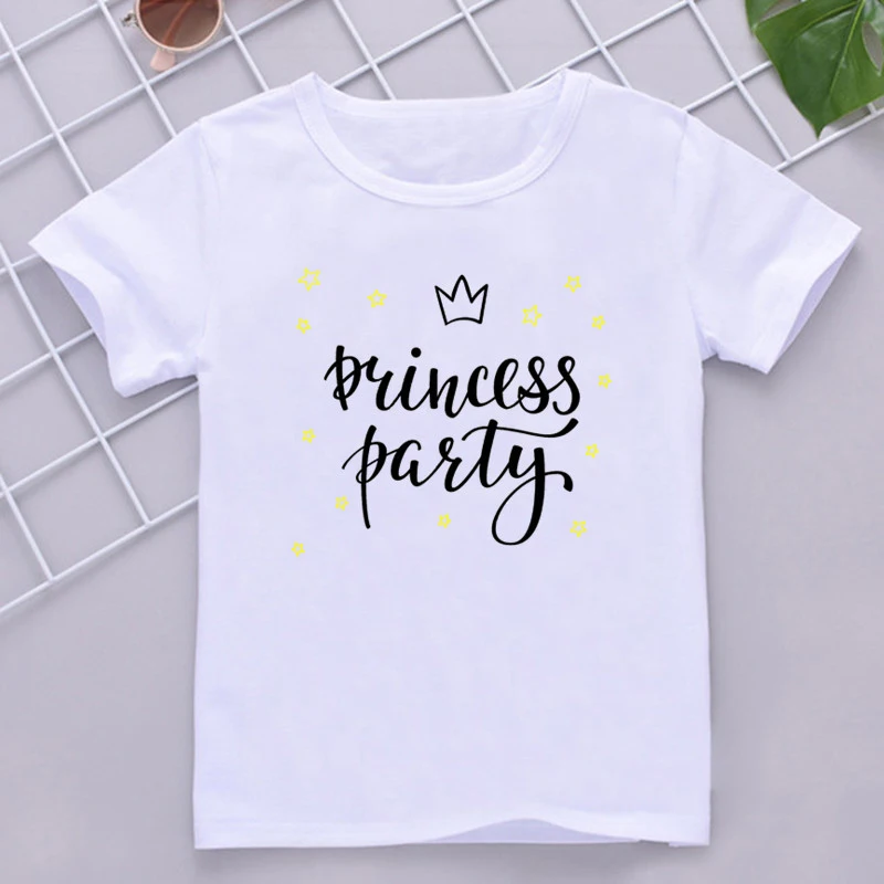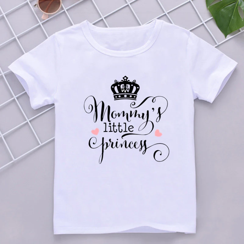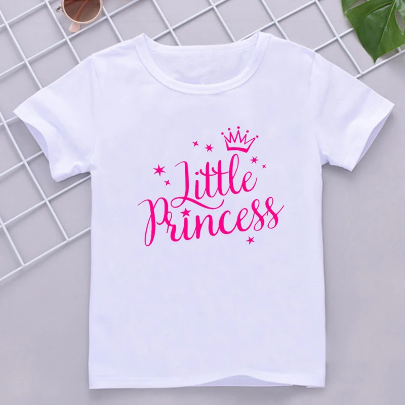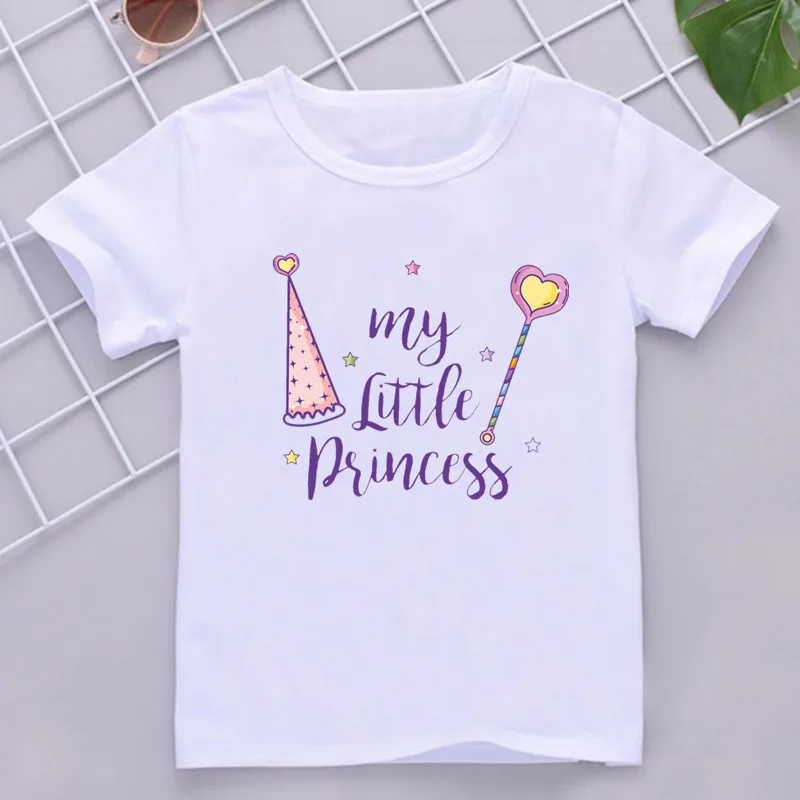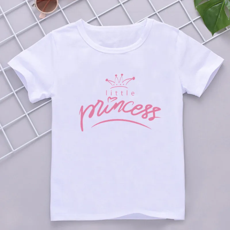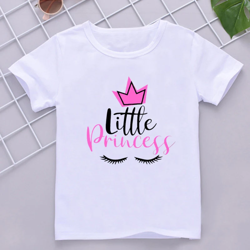 Футболка с короной принцессы, детская одежда для девочек, белая футболка с коротким рукавом, летняя детская одежда, детские топы