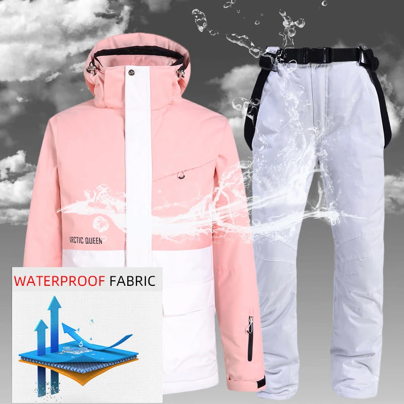 Женский лыжный костюм, куртка и штаны, ветрозащитные, водонепроницаемые, для катания на лыжах, сноуборде, зимние, плотные, теплые, для улицы