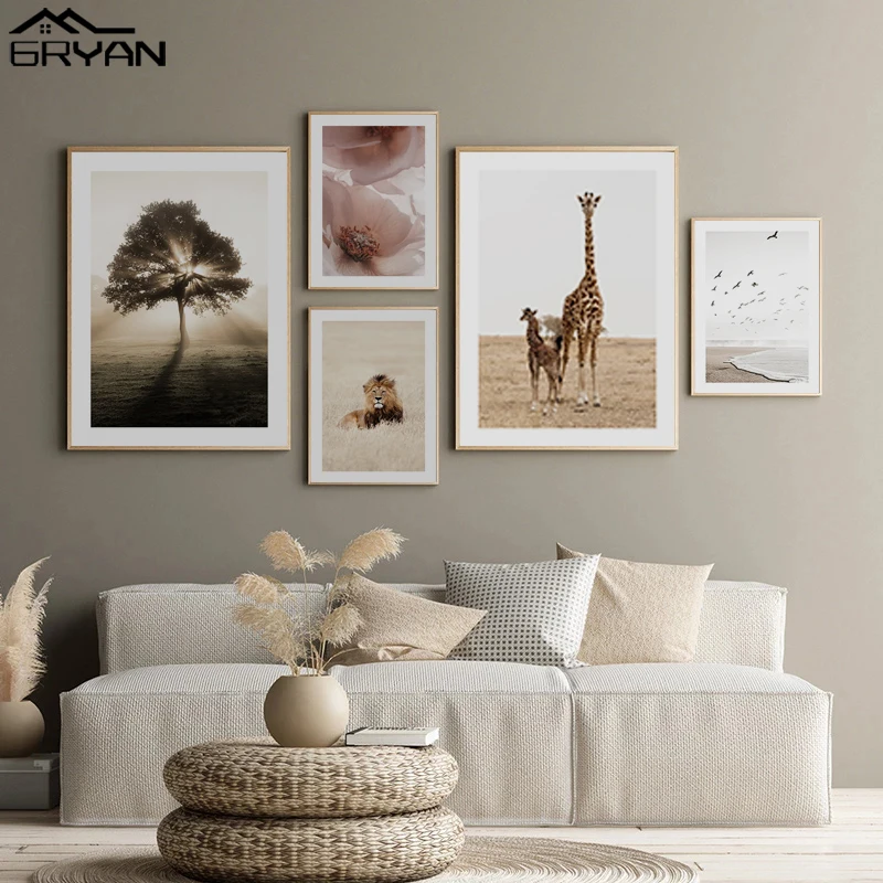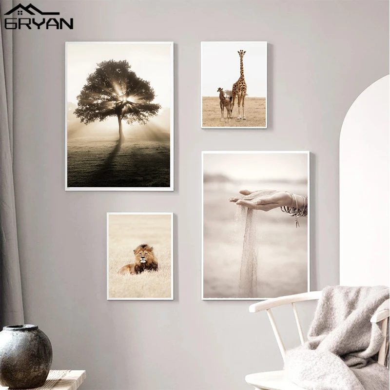 Африканская пастбища, Лев, жираф, животные, холст, картина, цветы, девушка, пустыня, пляж, постер, скандинавский пейзаж, картина, домашний декор