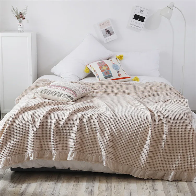 Хлопковое летнее покрывало из вафельного муслина, воздухопроницаемое кружевное серое розовое одеяло для кровати, мягкое теплое клетчатое покрывало для кровати, дивана, плед