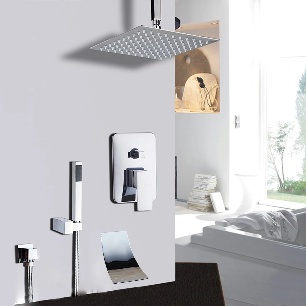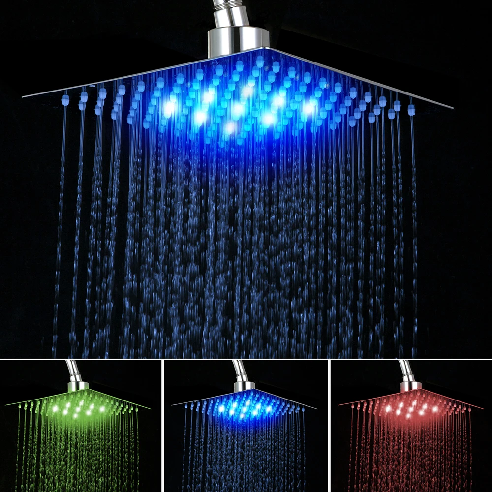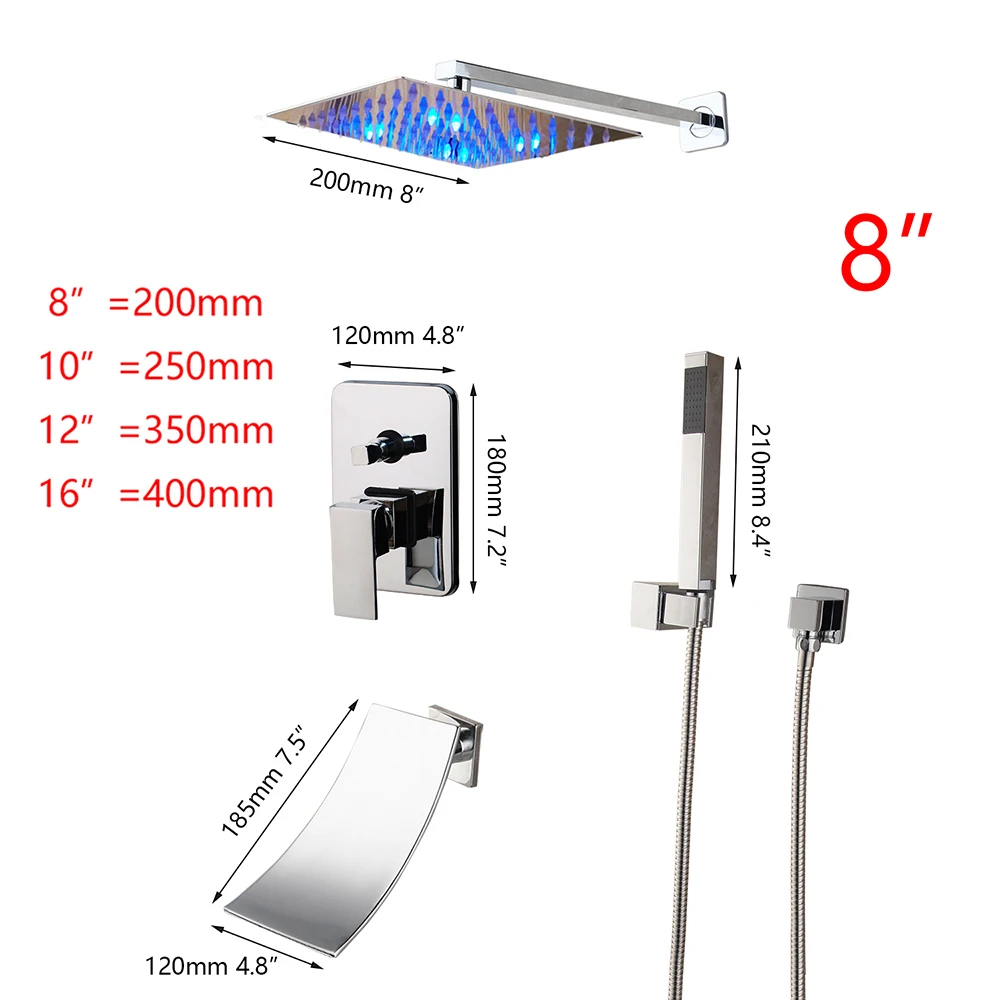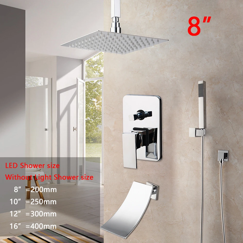 OUBONI 816 дюймовый светодиодный хромированный полированный набор для душа для ванной комнаты, дождевая насадка, смеситель с потолочным креплением, хромированный латунный Смеситель для ванны и душа