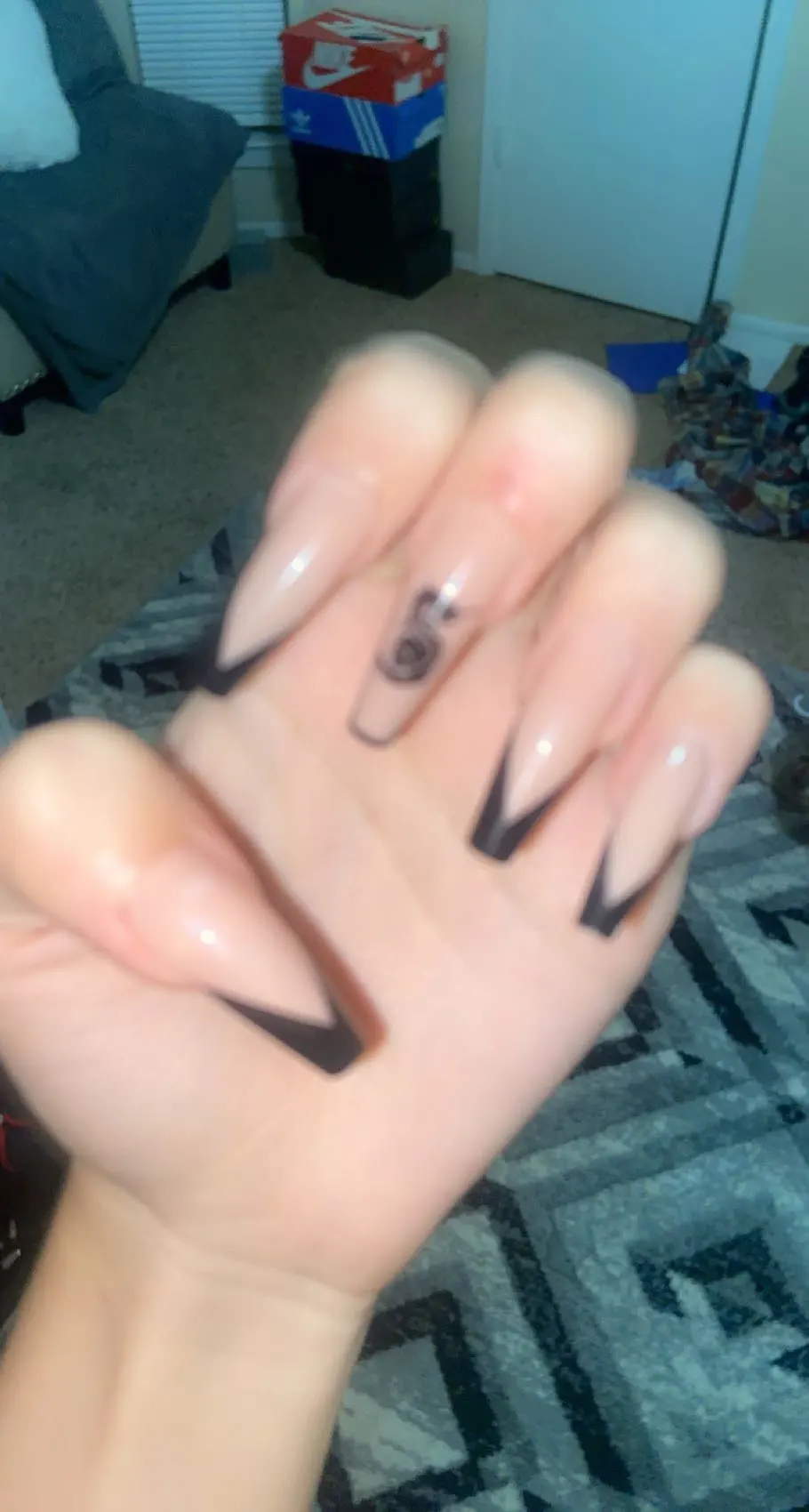 24 шт. накладные ногти с черным драконом V форма дизайн длинный гро...