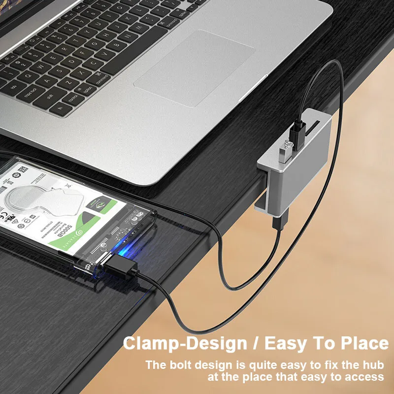 1. Конструкция зажимаРегулируемый болт дизайн позволяет зажимать концентратор на вашем экране монитора или столе края толщиной от 0,39 до 1,26 дюйма, не занимает много места для рабочего стола. Он выглядит очень чистым на вашем столе и делает доступ к usb-портам очень удобным. И обновили его можно использовать на изогнутой или неправильной форме спины дисплеера2. Четыре порта USB 3,0:Этот монтируемый usb-хаб расширяет 4 usb-соединения типа A (5 Гбит/с) до вашего pc-скорости вашего рабочего темпа с дополнительными портами. Поддерживается система Windows 8, 7/Vista/Mac OS /Linux.3. Прочная алюминиевая конструкция:Премиум-материал обещает прочное использование и быстрое рассеивание тепла, в то время как его гладкий дизайн хорошо сочетается с любым окружением. Алюминиевая конструкция в сочетании с резиновой подложкой, чтобы не царапать то, что Вы зажимаете.4. Подключи и работай:Подключите один конец включенного шнура к компьютеру, а другой-к этому концентратору. Подождите несколько секунд, пока компьютер распознает его, а затем подключите устройство. Нет ручной конфигурации или настройки.5. Дополнительный порт питания обновлен:Обновленный дополнительный порт питания позволяет использовать портативные жесткие диски и другие Мощные устройства без беспокойства.