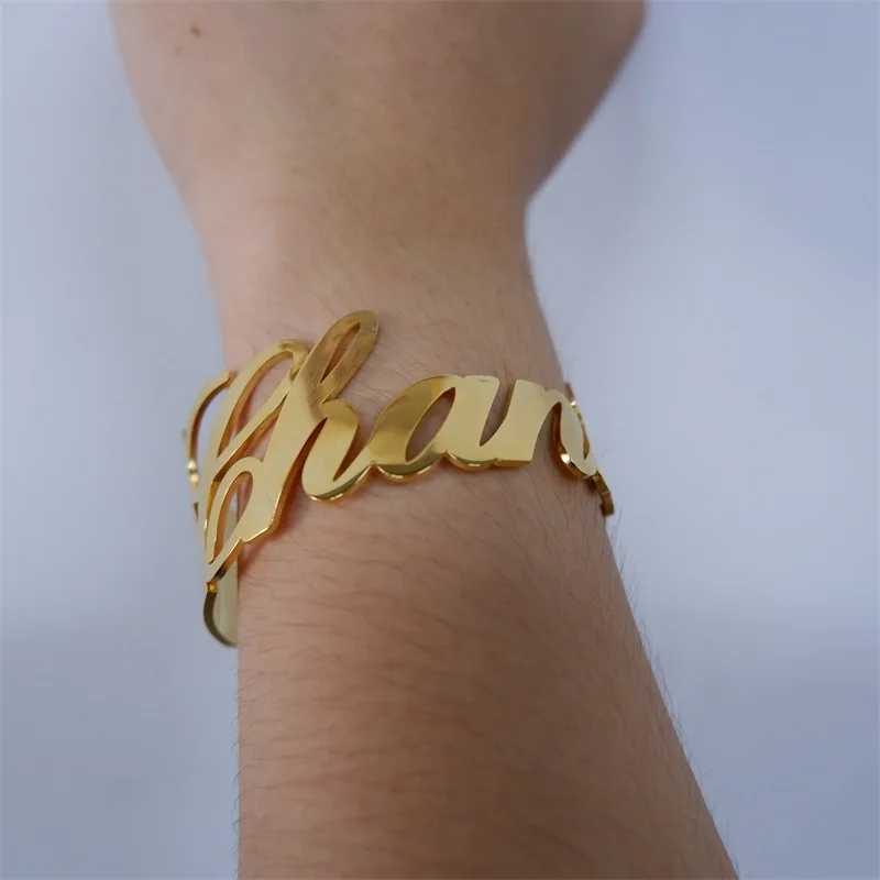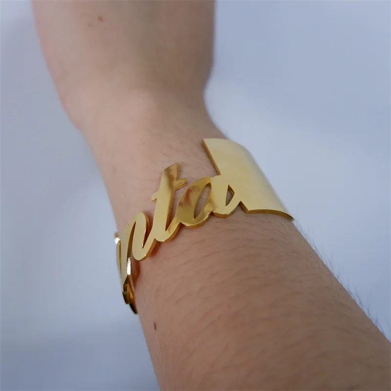 Модный браслет из нержавеющей стали под заказ, браслеты-манжеты для женщин и мужчин, индивидуальный золотистый браслет под заказ, украшения для выпускного Gifts