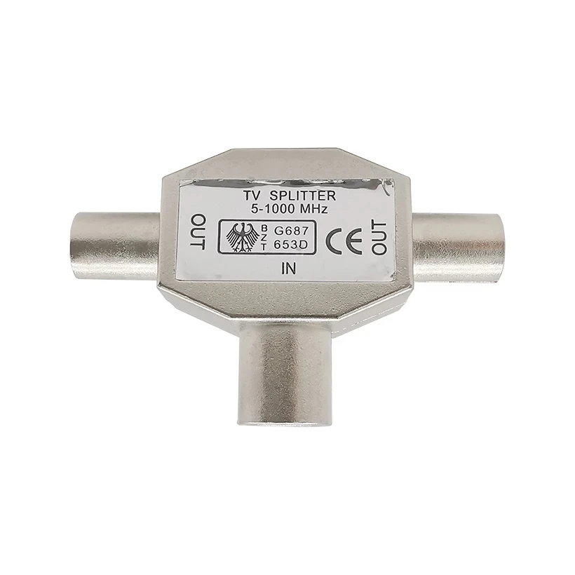 Описание:Это сплиттер для ТВ коаксиальных кабелей,Он имеет металлический корпус и номинальное значение 0 - 1000 МГц.
