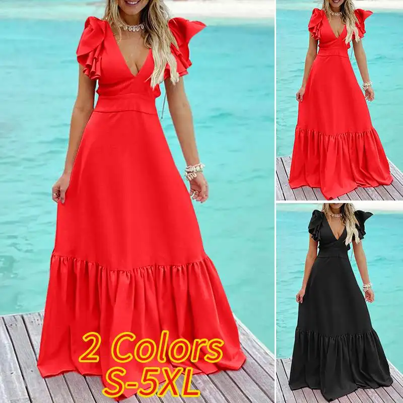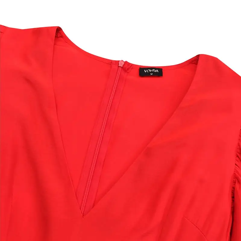 Женское сексуальное Макси-платье без рукавов VONDA, сексуальное вечернее плиссированное платье с глубоким V-образным вырезом и оборками на манжетах, богемное женское платье