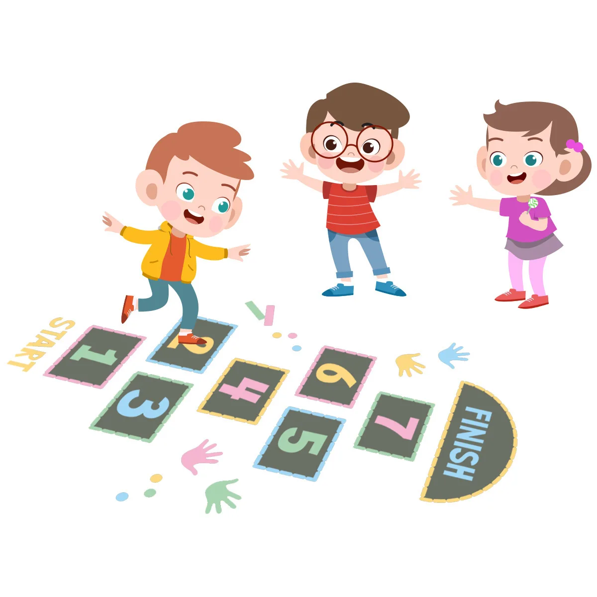 Мультяшные цифровые напольные наклейки в клетку для детских игр, Пе...