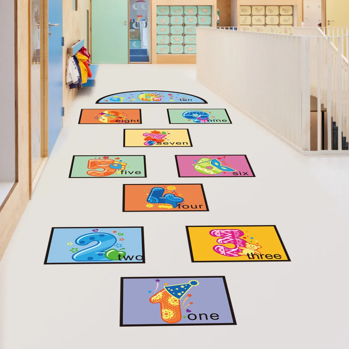 1-10 цифровых напольных наклеек в виде сетки, Детская игра Hopscotc...