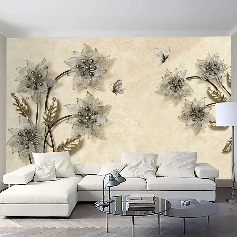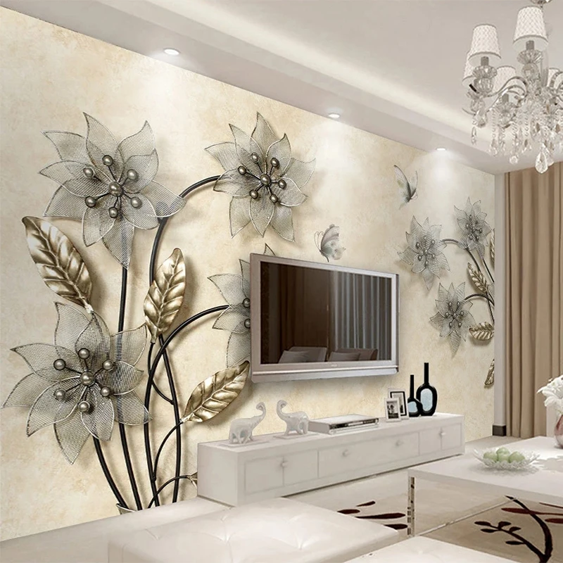 Пользовательские фото обои современные 3D стерео золотые ювелирные изделия цветок ТВ фон настенная Гостиная ТВ диван спальня 3D домашний декор