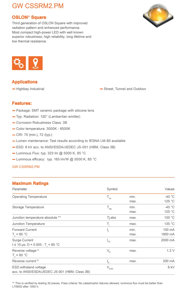 OSRAM GW CSSRM2.PM светодиодный параметр свойства: