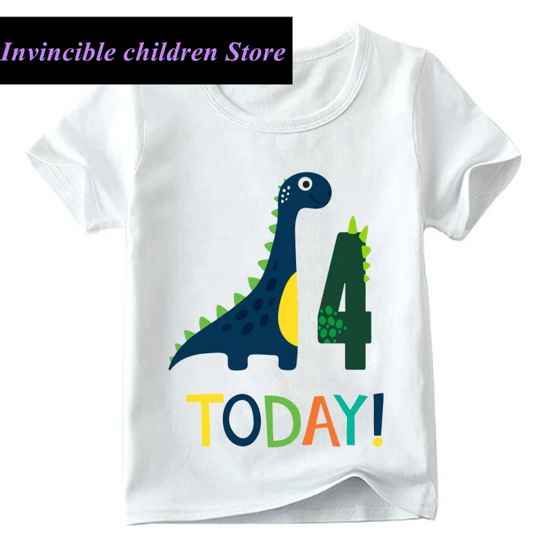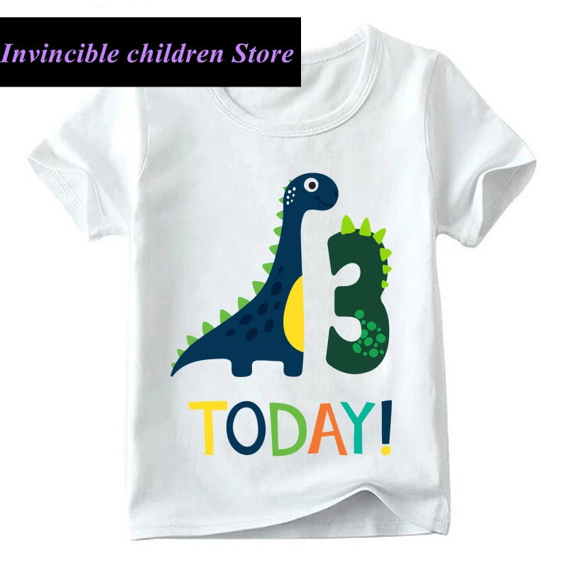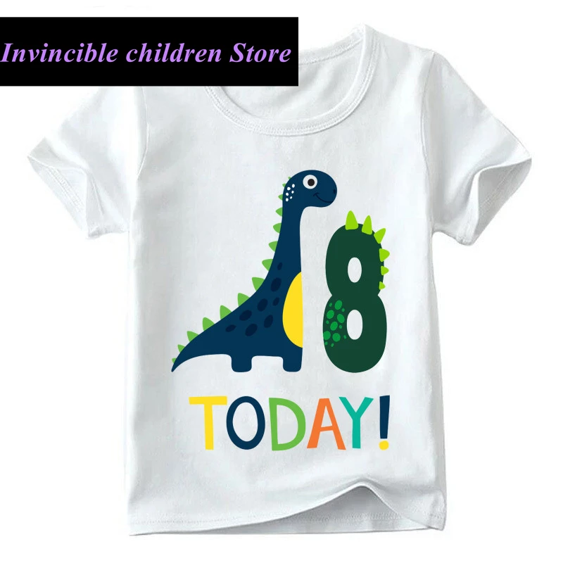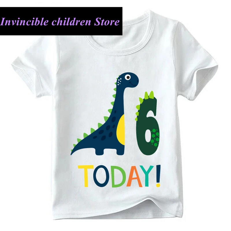 Футболка для мальчиков, с принтом динозавра на день рождения, с циф...