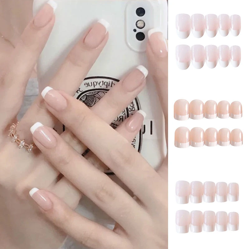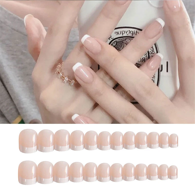 Модные женские французские ногти 24 шт. в стиле Ins, накладные ногти, акриловые накладные ногти с полным наконечником, накладные ногти с клеем 2021