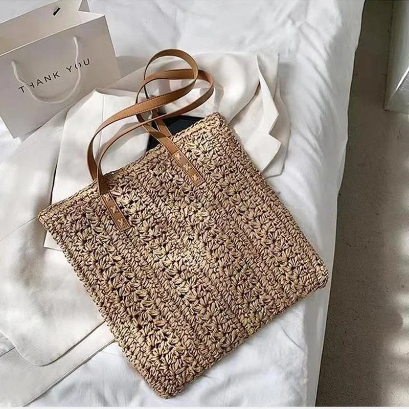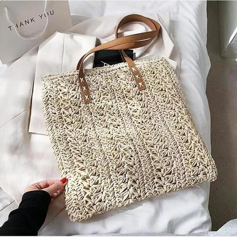 Летняя Пляжная Соломенная Сумка-тоут ручной работы из рафии и ротанга